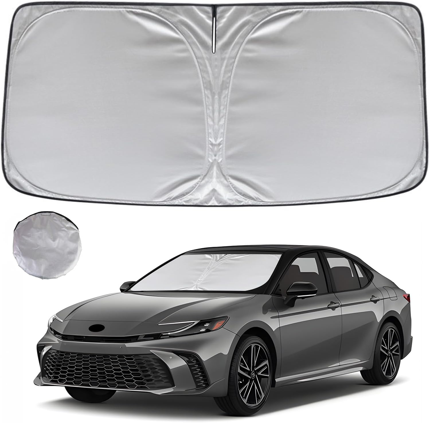 - KAYZT windshield sun shade is precise custom fit for 2025 2026 Toyota Camry, Thoroughly covers every corner of the windshield, Tailored to accommodate rear view mirror, Ensuring a seamless and snug fit without obstruction, Must have car accessories for Toyota Camry LE XLE Hybrid SE XSE