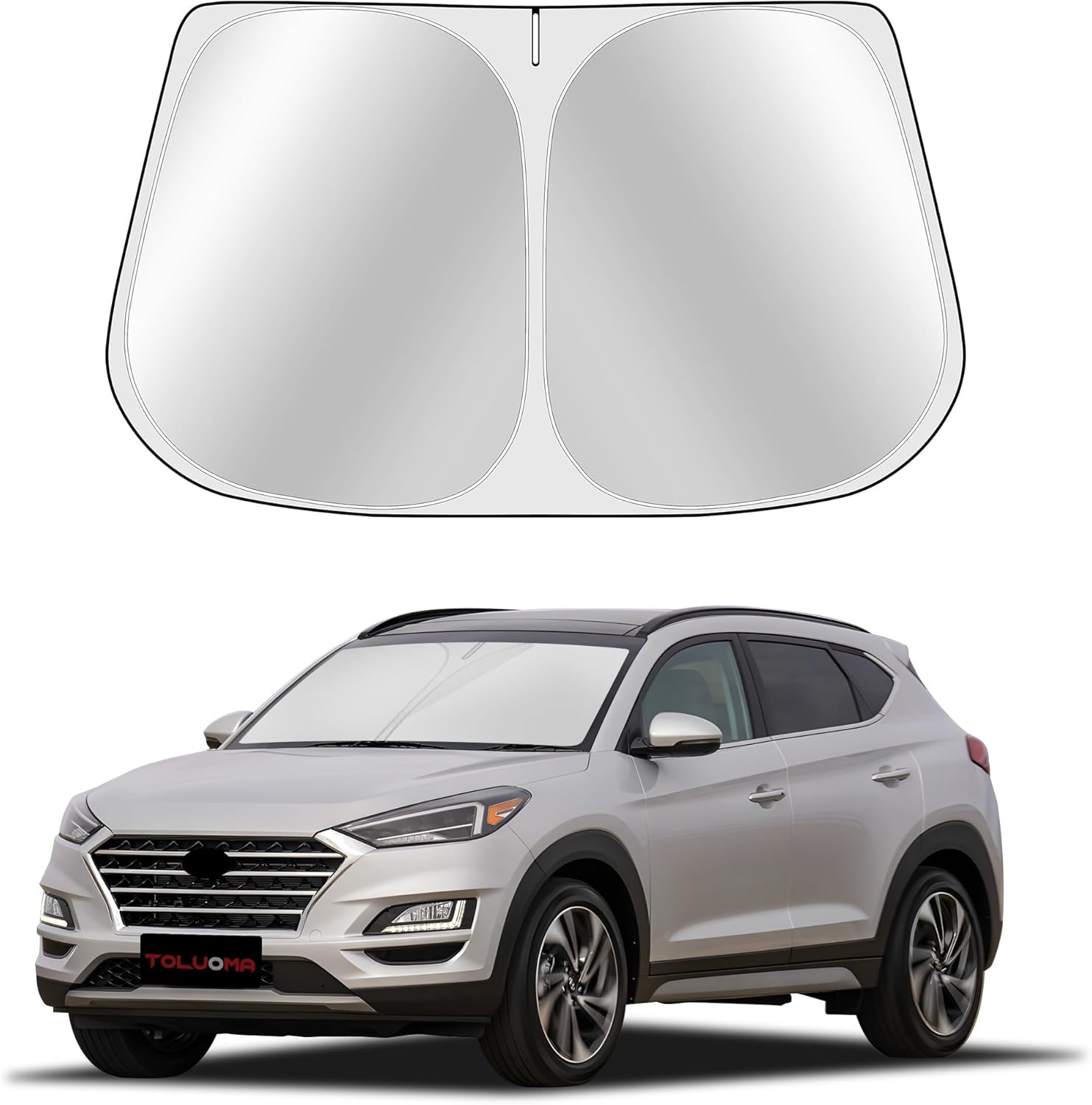 Custom Fit Windshield Sun Shade for for H-yun-dai Tucson 2016-2021 - Full Coverage, 210T Reflective Fabric, Double-Layer Design - Blocks 99% UV Rays, Keeps Car Cool, Easy to Install and Store