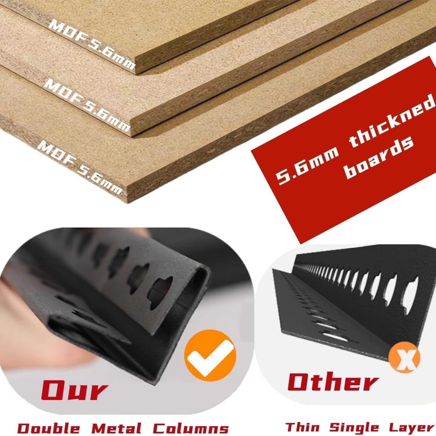 - 【Tool-Free Installation with Bolt-Free Slotted Design for Easy Assembly】 Forget the hassle of complicated assembly instructions and missing bolts—this shelving unit features a unique bolt-free slotted design for quick and easy installation. While many wooden shelving units require screws and additional hardware, our innovative design allows you to set up the structure without any tools, saving time and effort. Even if you’re not a DIY expert, most users can have it ready for use in a short amount of time, providing a practical and time-saving storage solution