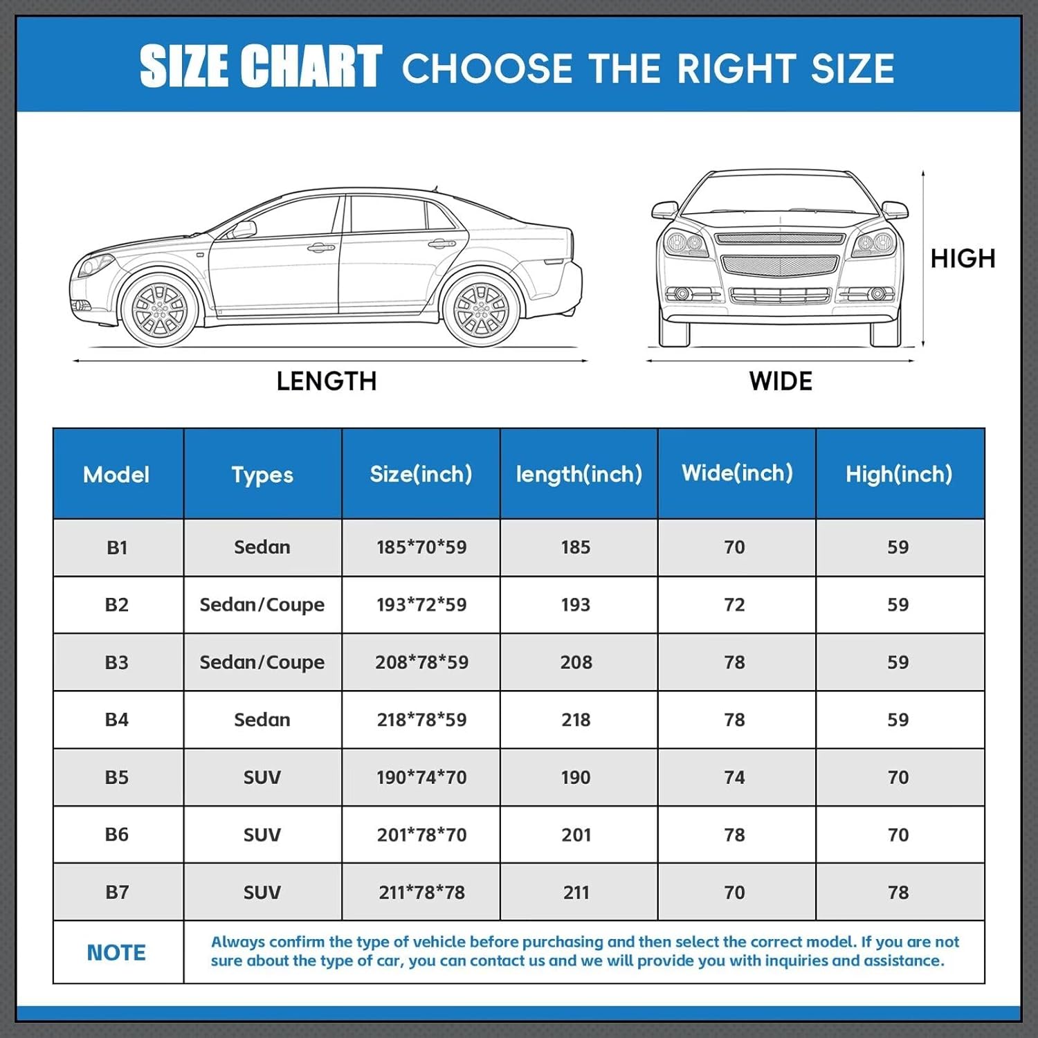 - 【Size Selection】- Our B7 model is designed for SUV 202 inch to 211 inch in length. It is compatible with a variety of popular car models, such as Chevrolet Tahoe Trailblazer, Mercedes GLS, Infiniti QX56 QX80, GMC Yukon(not fit XL), Lincoln MKT, Jeep Grand Wagoneer, Toyota Sequoia, Ford Expedition(not fit Max) and other cars.