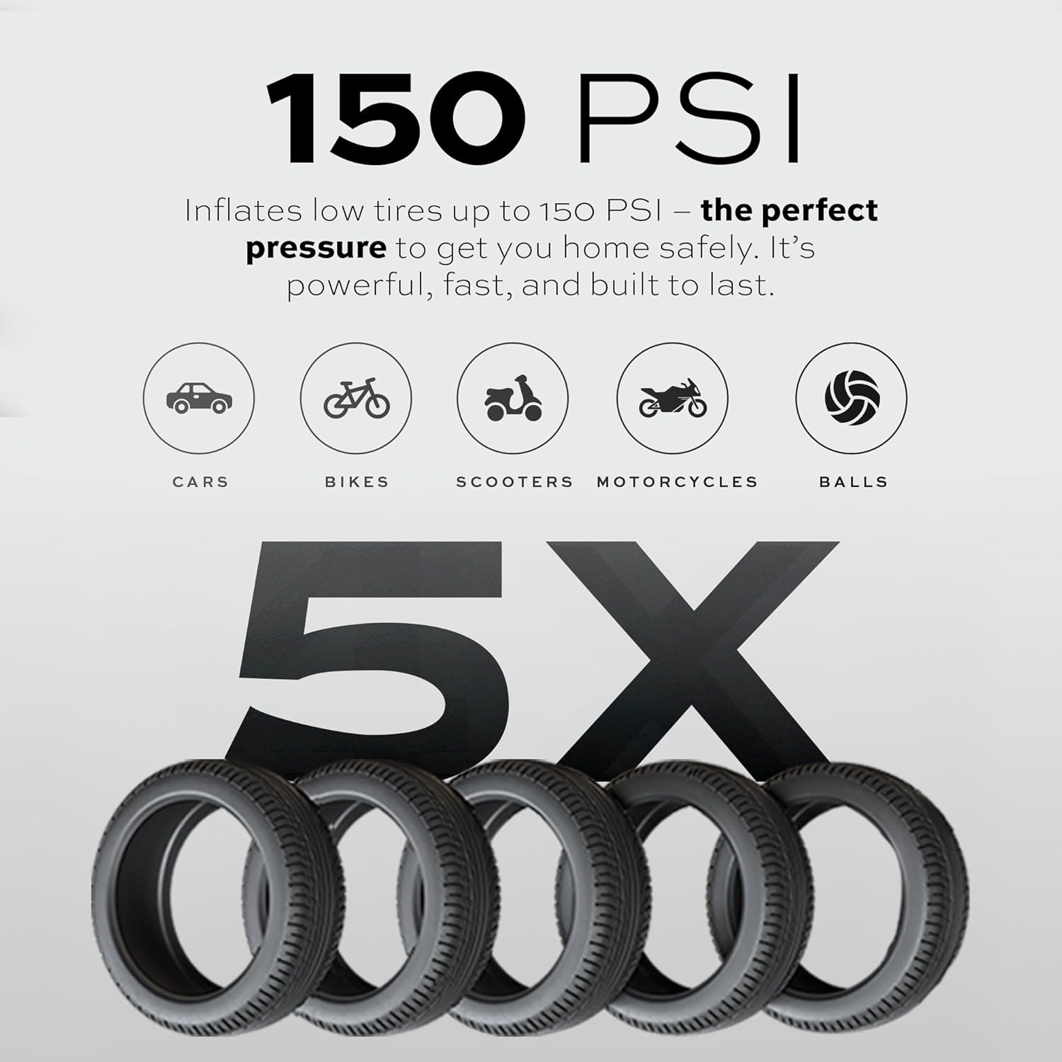 STATIK TireHero Car Tire Inflator Portable Air Compressor - 150 PSI, Electric Air Pump for balls, Bike Pump, Inflatables, Paddleboard, Air Mattress, Car Emergency Safety Kit w/Flashlight