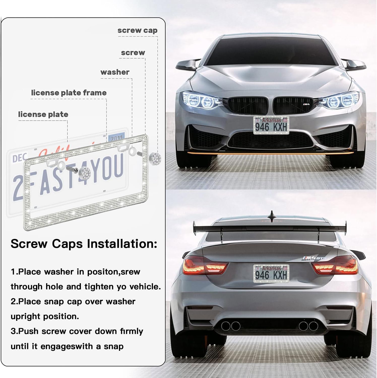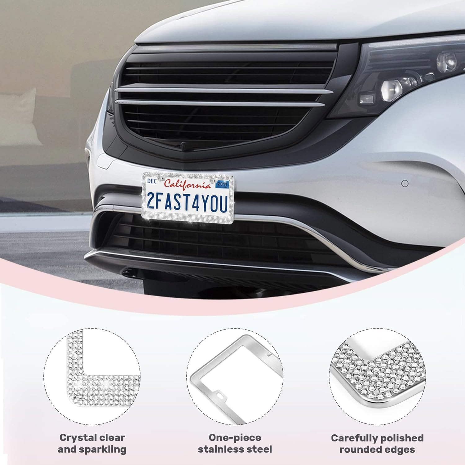 - 【Super Sparkly License Plate Frames】: Why go for boring plain license plate frames when you can go super fab with a car plate frame with actual rhinestones in it? Give your car a new cool look now! 2 Pack license plate frames for women are sure to make your car catch everyone’s eyes on the road