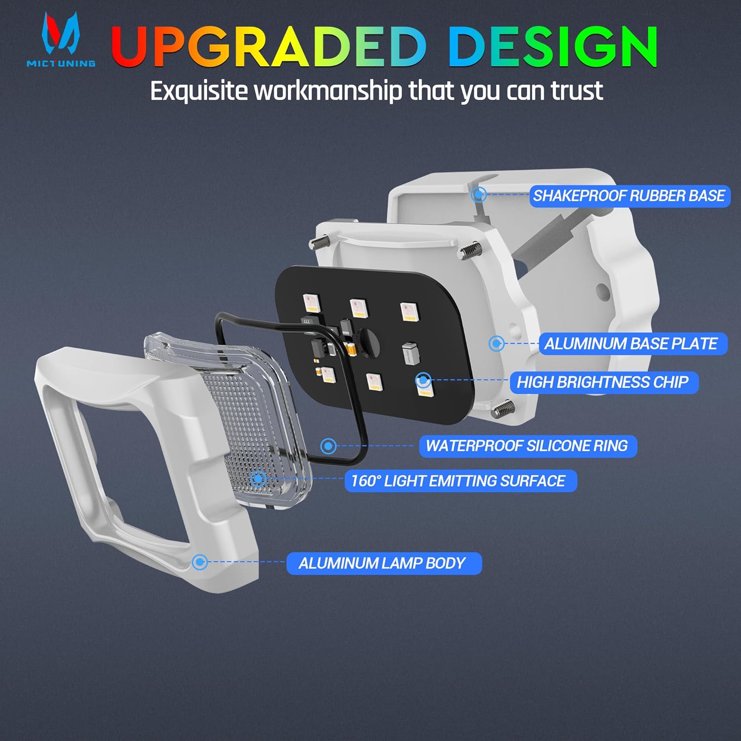 - MICTUNING Brand New White Housing C2 MAX Rock Lights - Since 2013, MICTUNING has been committed to the research and development of LED rock light, and become the market pioneer and leader. In 2020, we designed and launched a purest and brightest C2 rock light, which was deeply loved and respected by customers. After 3 years of innovative research, in 2023 we added dynamic DIY function on the basis of C2, and newly launched this RGB+IC C2 Dynamic Color Rock Lights