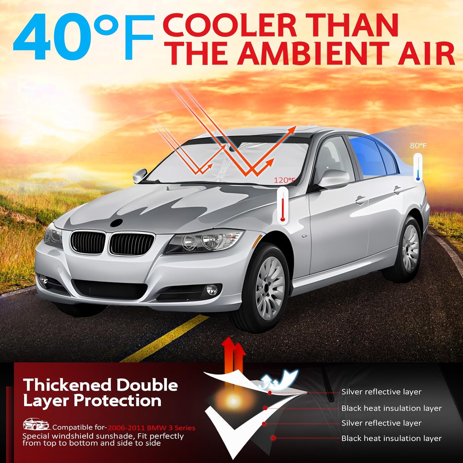 KAYZT Windshield Sun Shade for 2006-2011 BMW 3 Series 330i 328i 320i 325i 335i Foldable Sunshade Front Window Custom Fit Car Accessories
