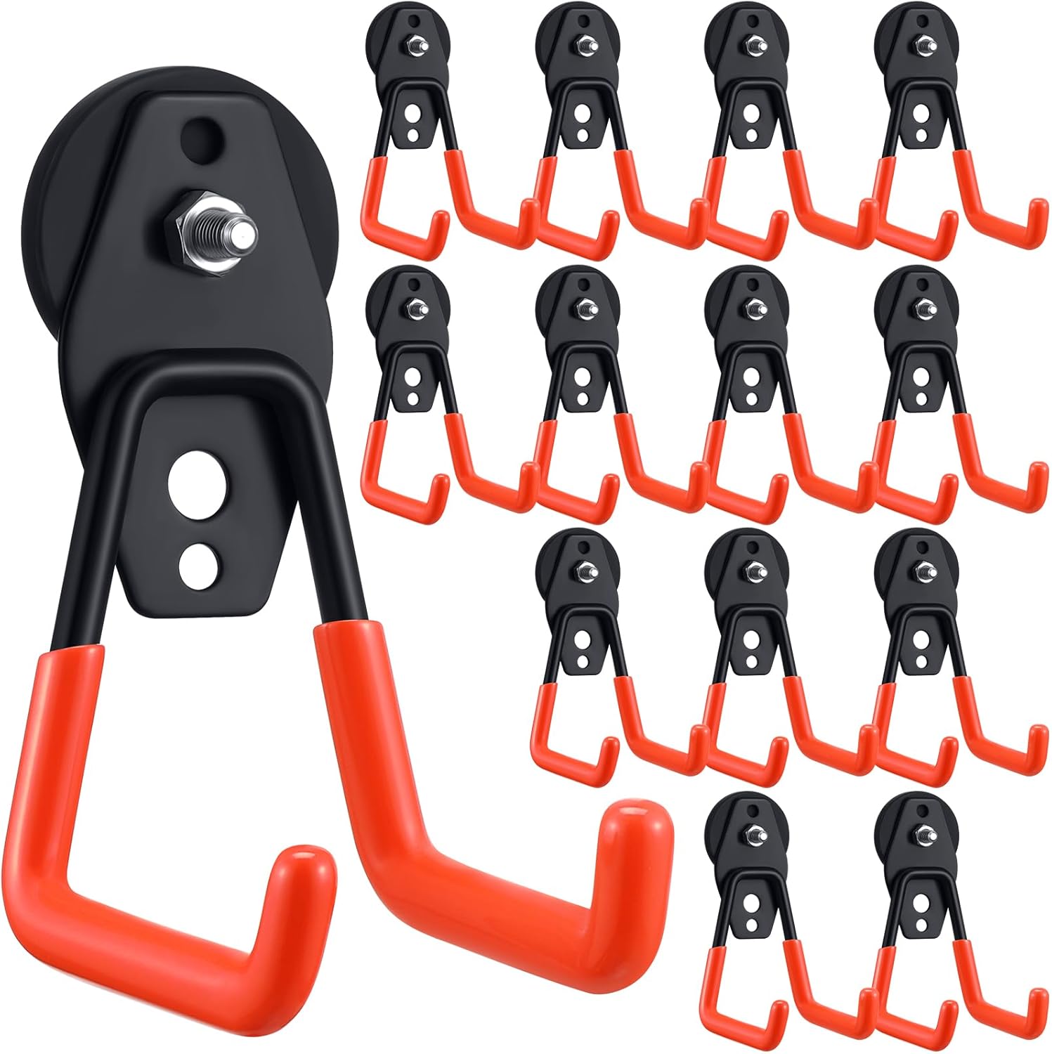 Landhoow Large Magnetic Hooks Heavy Duty Garage Magnet Hooks Strong Storage Utility Magnetic Hangers with Anti Slip Rubber Coating for Indoor and Outdoor Hanging(Orange,14 Pcs)