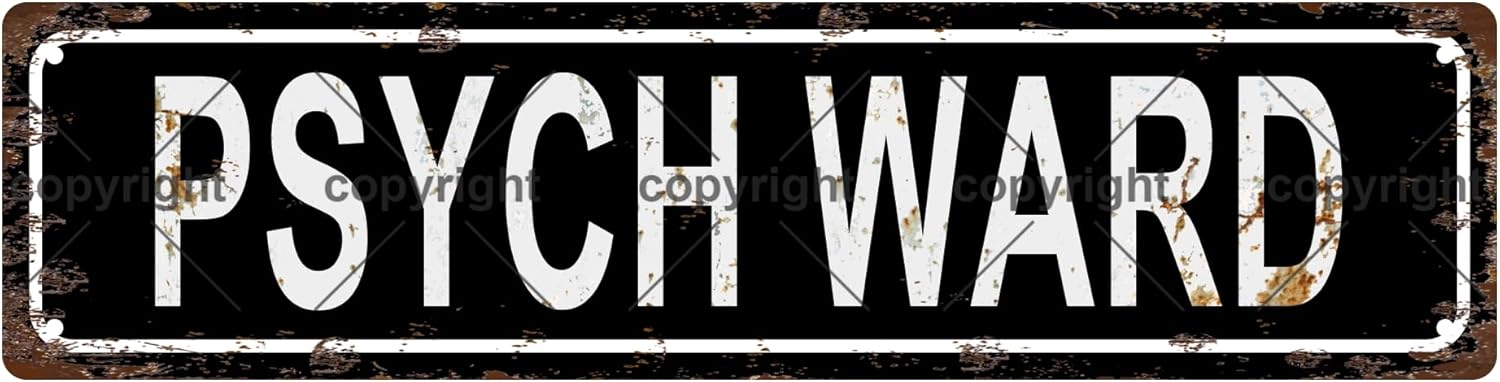 PSYCH WARD Vintage Metal Tin Sign, Street Sign, Home Decor, Room Decor, Wall Decor, Bathroom Decor, Bar Decor, Cafe Decor, Garage Decor, 16 x 4 Inch