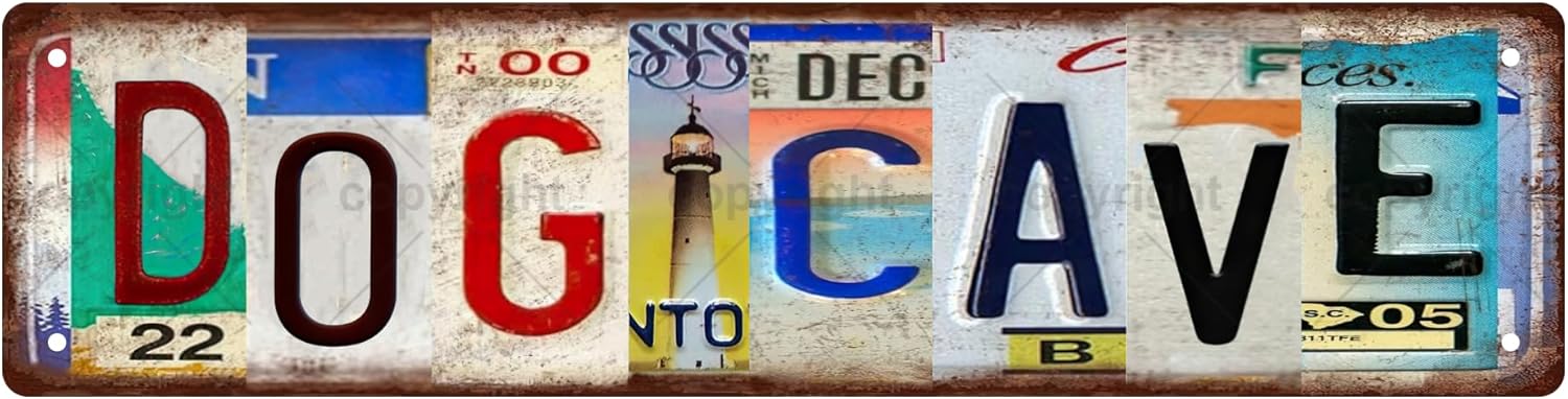 DOG CAVE Vintage Metal Tin Sign, Street Sign, Home Decor, Room Decor, Wall Decor, Bathroom Decor, Bar Decor, Cafe Decor, Garage Decor, 16 x 4 Inch
