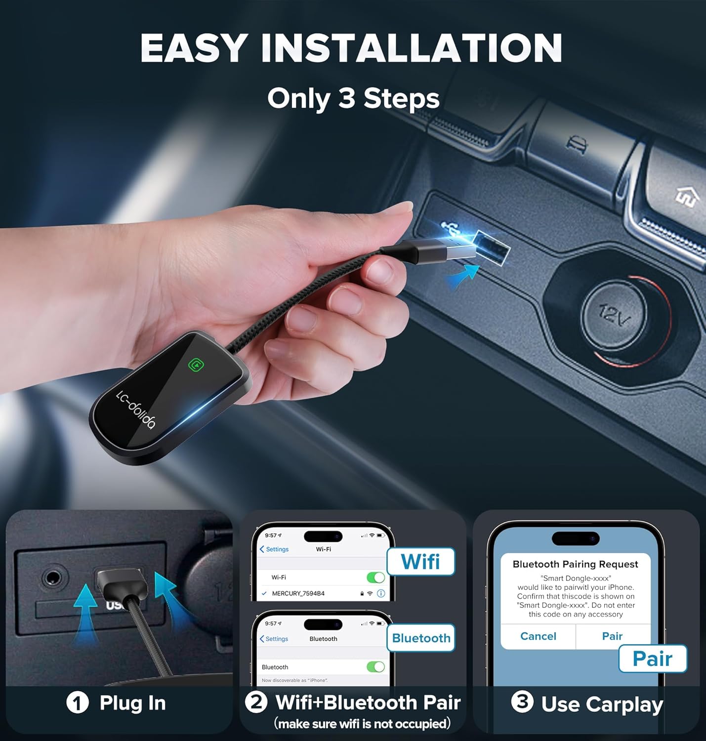 - Certified Safety and Wide Compatibility:Rest assured with our CarPlay adapter's RoHS, CE, and FCC certifications, guaranteeing compliance with international safety and environmental standards. It is compatible with most vehicles equipped with wired CarPlay and supports iPhones running iOS 10 and above. Upgrade your driving experience with confidence and ease.