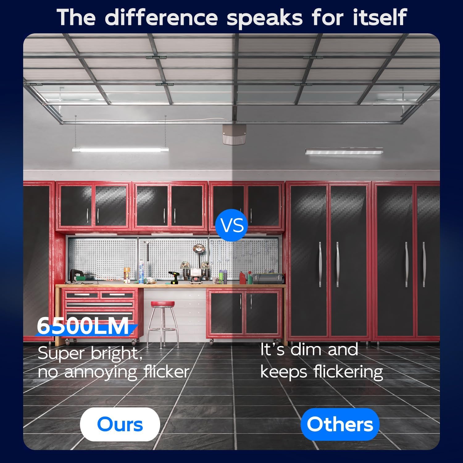 - ✅ Super Bright - 4FT led shop lights feature 6500 lumens brightness at 5000K Daylight White by using only 60W. That is a staggering LED Efficiency of 108 lm/w! Excellent replacement of conventional fluorescent fixture. Energy Savings of up to 75%.