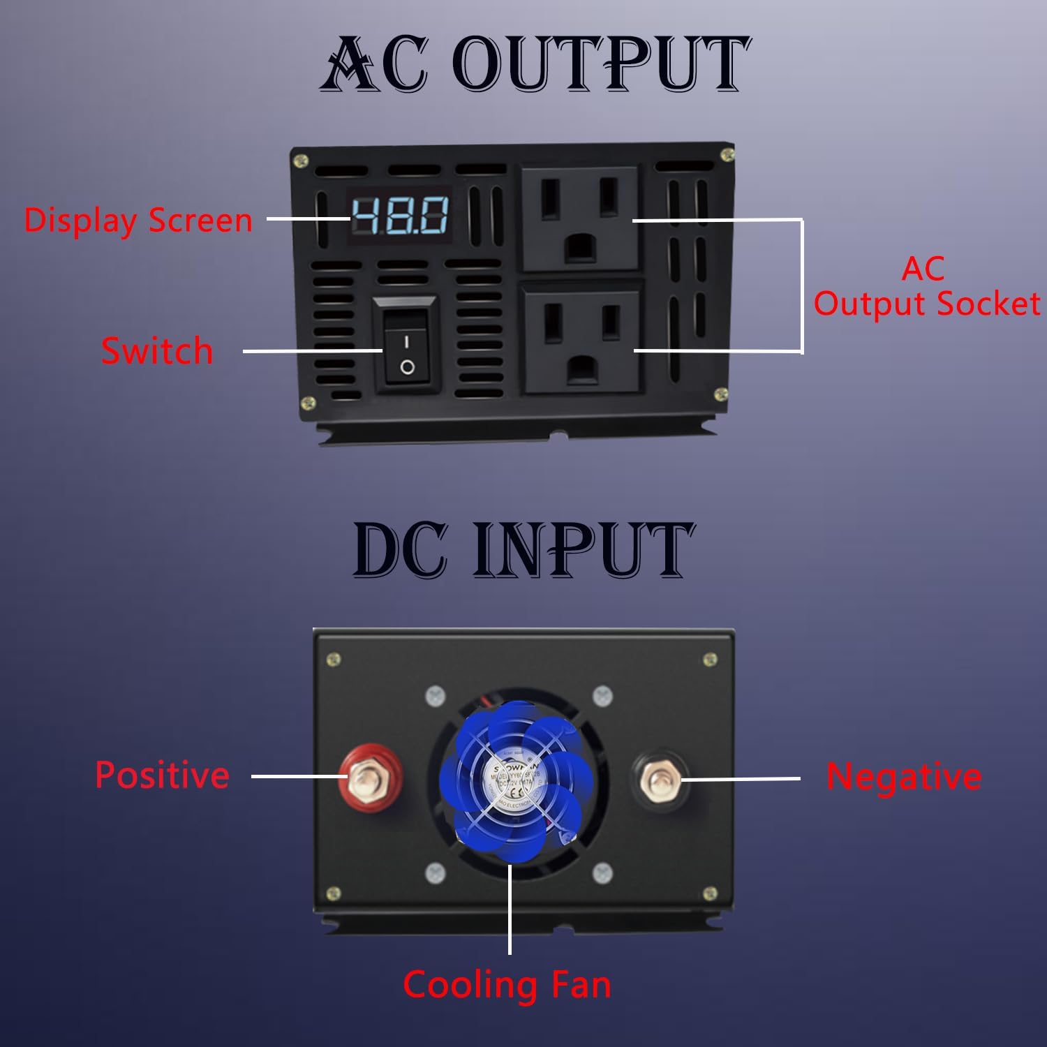1000W Pure Sine Wave Inverter-48V DC to 110V 120V AC Power Converter with 2 AC Outlets, 48 Volt Power Inverter for Home, Emergency Power