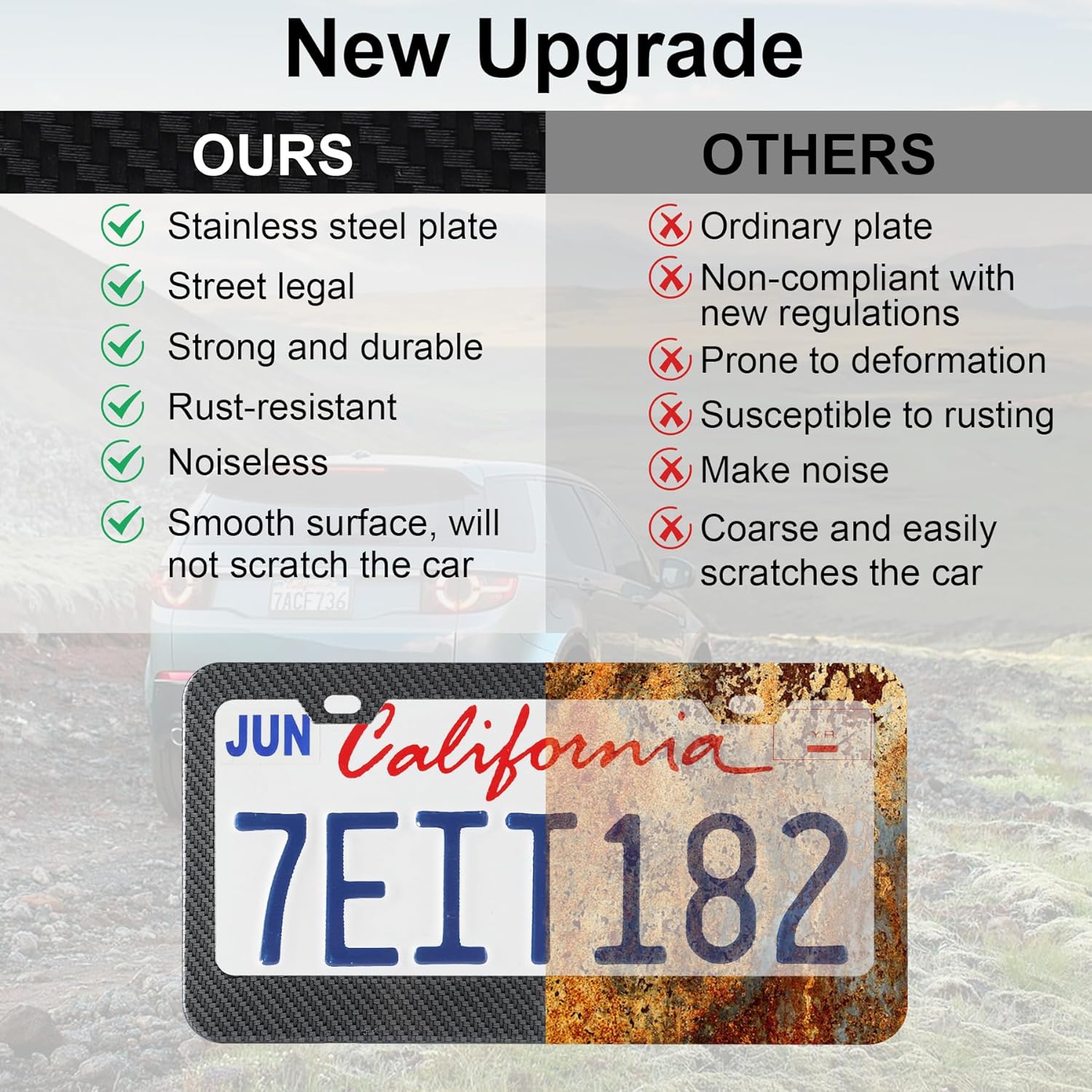 - 【Sleek and Stylish Design】The slim black design offers a clean, modern look that complements any vehicle exterior without blocking registration tags. The painted finish enhances texture, while the polished smooth edges are safe for both your car and your hands.