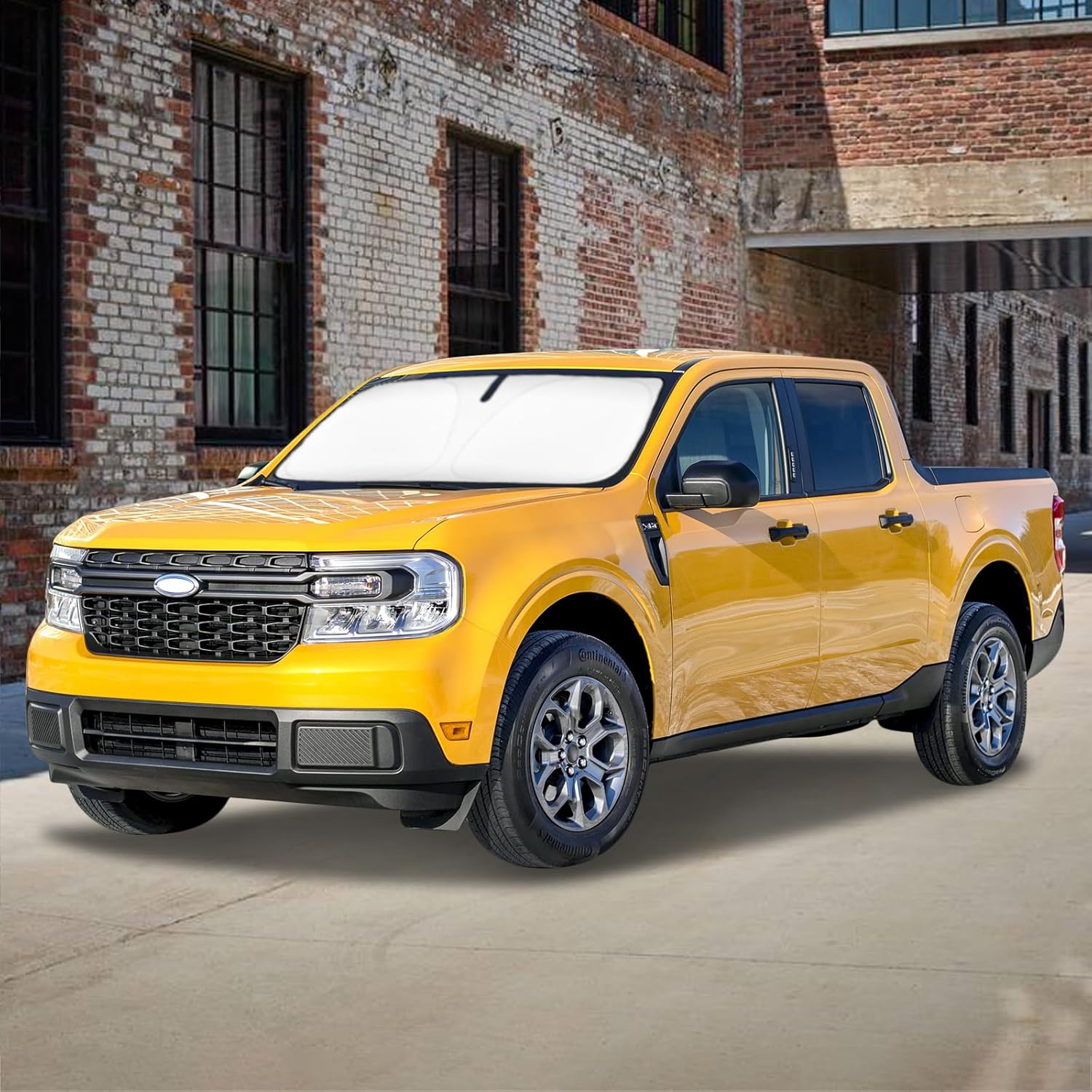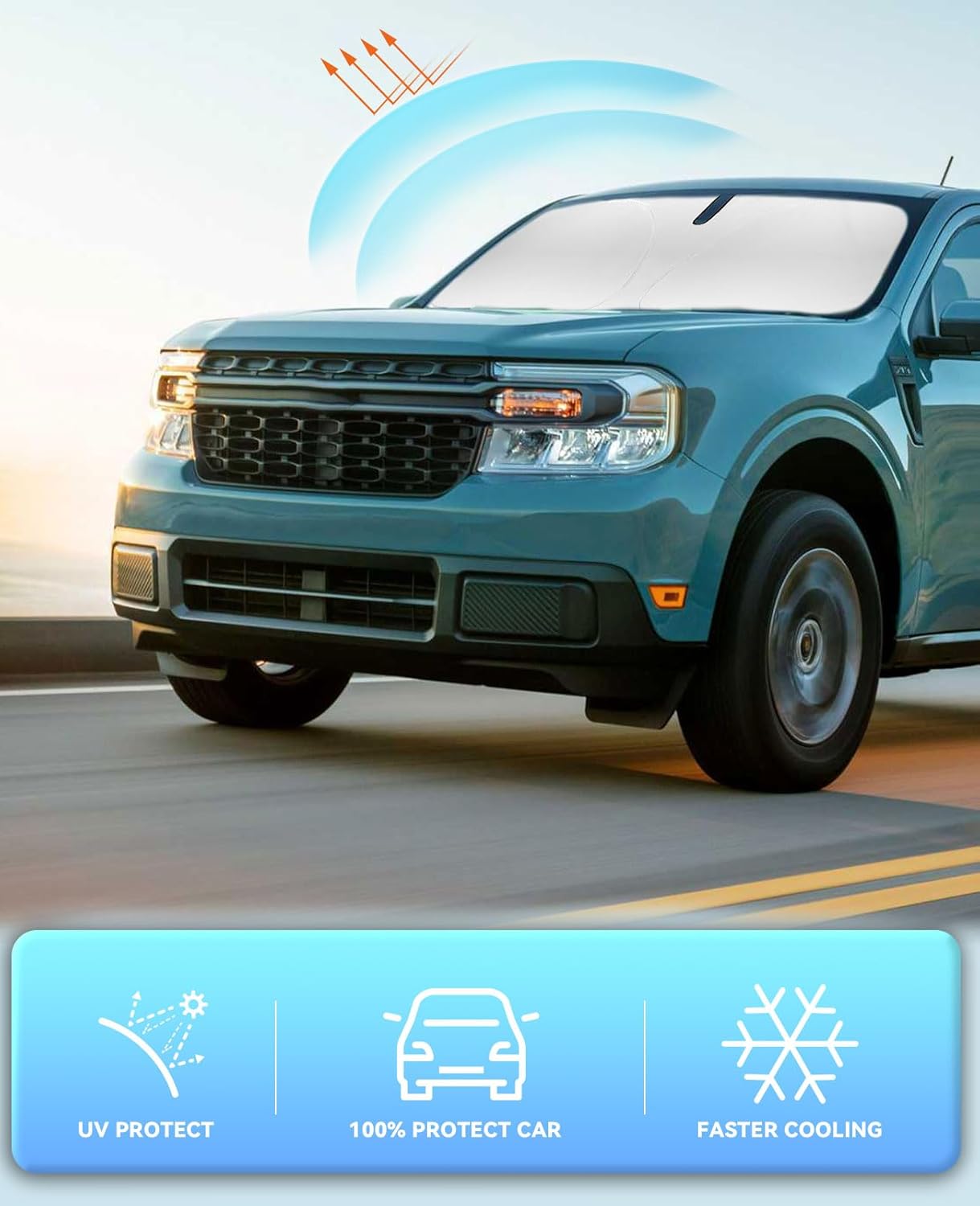 - 【Vehicle Specific】Our Windshield Shade Cover Custom Fit for Ford Maverick Accessories 2022 2023 2024 2025 2026, Full covered your windshield,No Gap,100% Perfect fit. The precise fit design and reinforced steel ring are sufficient to allow the sun shade to precisely fit the front window without the need for suction cups to hold it in place, effectively protecting your car from the sun's rays.