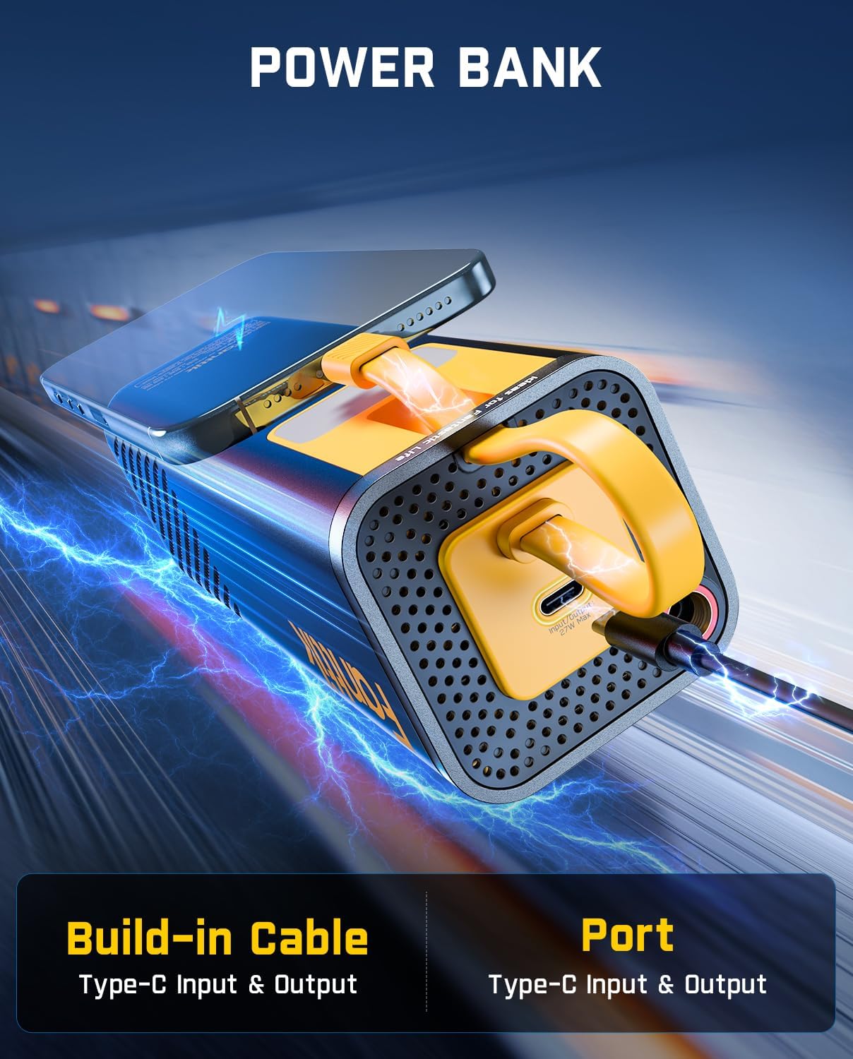 - Portability: This inflator features a storage compartment at the base for accessories, keeping everything organized and secure. Plus, the cleverly designed charging cable doubles as a portable carry strap, making it easier to take with you on the go