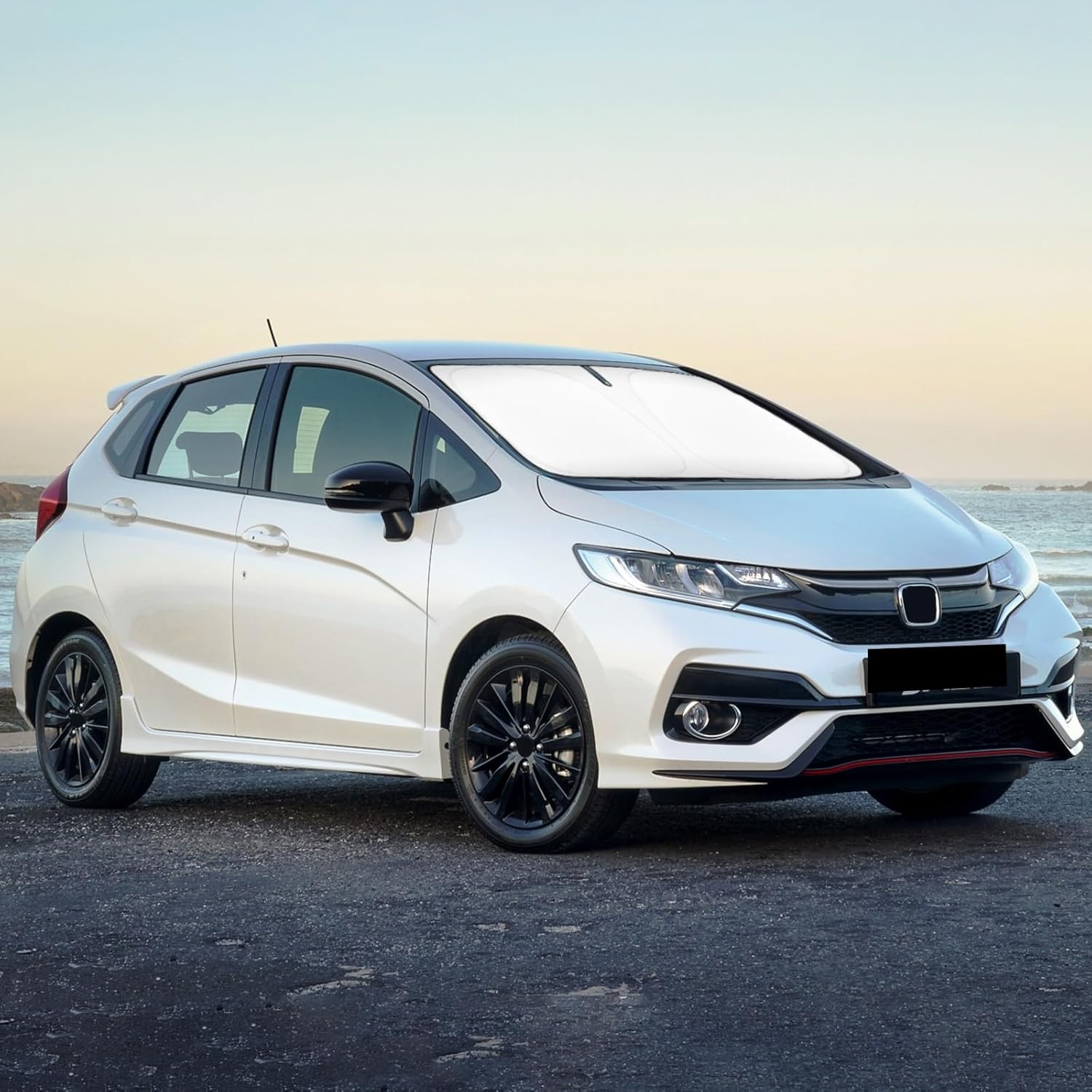 - 【Vehicle Specific】Our Windshield Shade Cover custom fit for Honda Fit 2021 2022-2024 Accessories, Base, Sport, Hybrid, A-Spec SUV Accessories,Full covered your windshield,No Gap,100% Perfect fit. The precise fit design and reinforced steel ring are sufficient to allow the sun shade to precisely fit the front window without the need for suction cups to hold it in place, effectively protecting your car from the sun's rays.