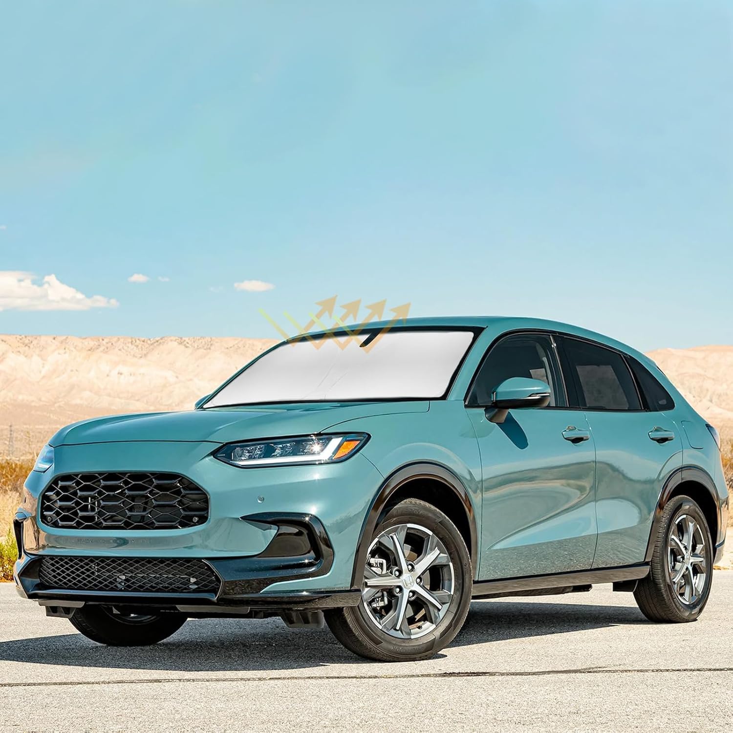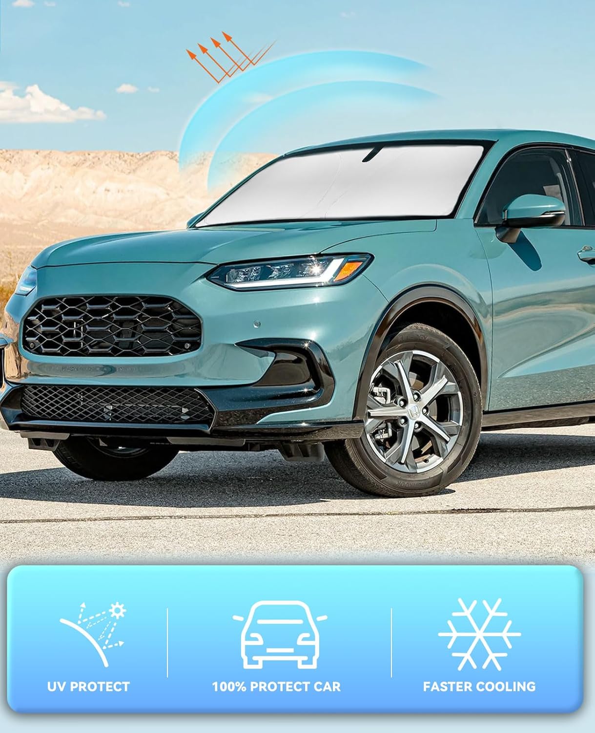 - 【Vehicle Specific】Our Windshield Shade Cover custom fit for 2021-2023 2024 2025 2026 Honda HR-V LX Sport EX EX-L Accessories , Base, Sport, Hybrid, A-Spec SUV Accessories,Full covered your windshield,No Gap,100% Perfect fit. The precise fit design and reinforced steel ring are sufficient to allow the sun shade to precisely fit the front window without the need for suction cups to hold it in place, effectively protecting your car from the sun's rays.
