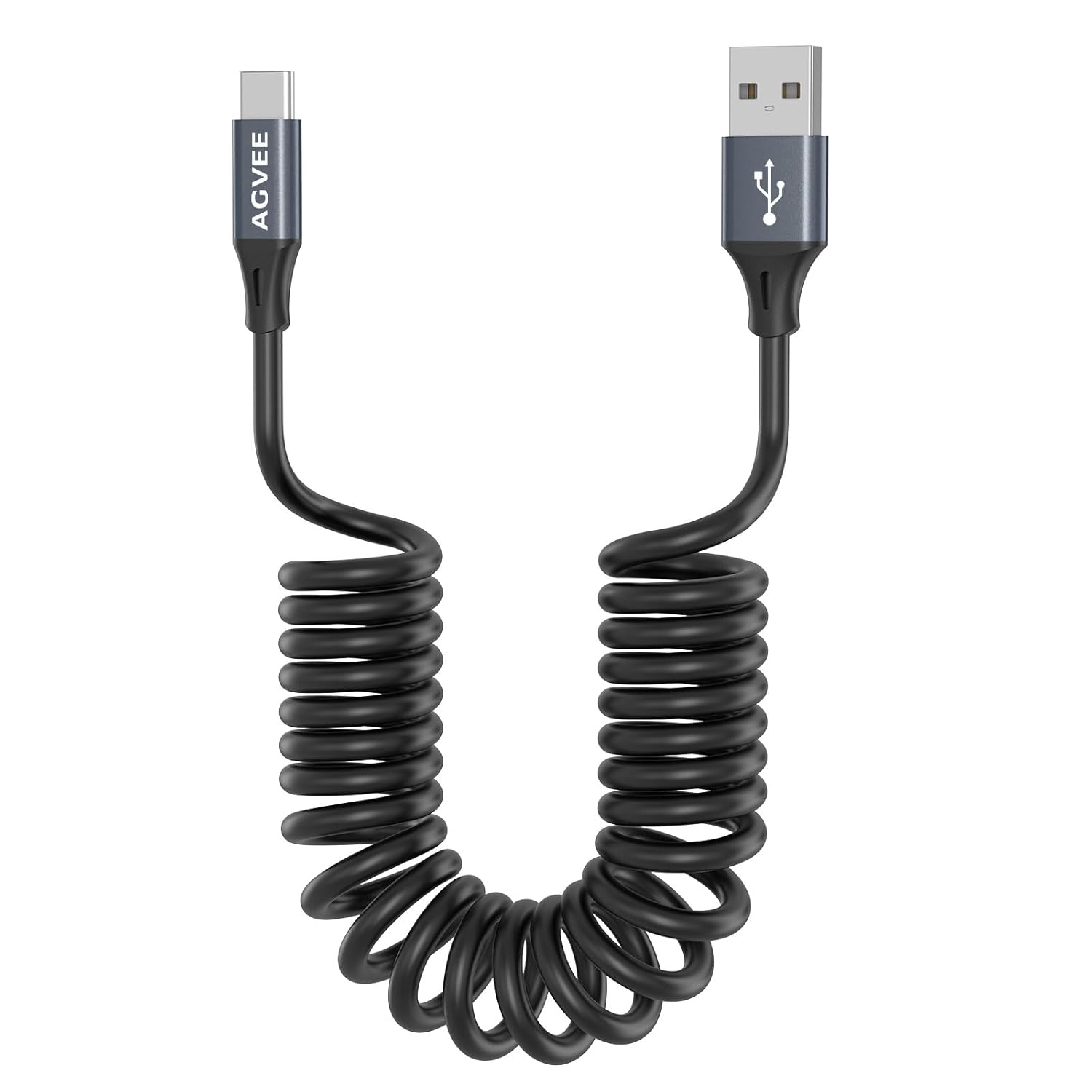 AGVEE 3ft Coiled Short USB to USB-C Charging Cable [USB-IF Certified] 3A Fast Charger Cord in Car for iPhone 16/15 CarPlay, Galaxy S25 S24 S23 S22 S21 S10 S9 S8, Google Pixel, Dark Gray