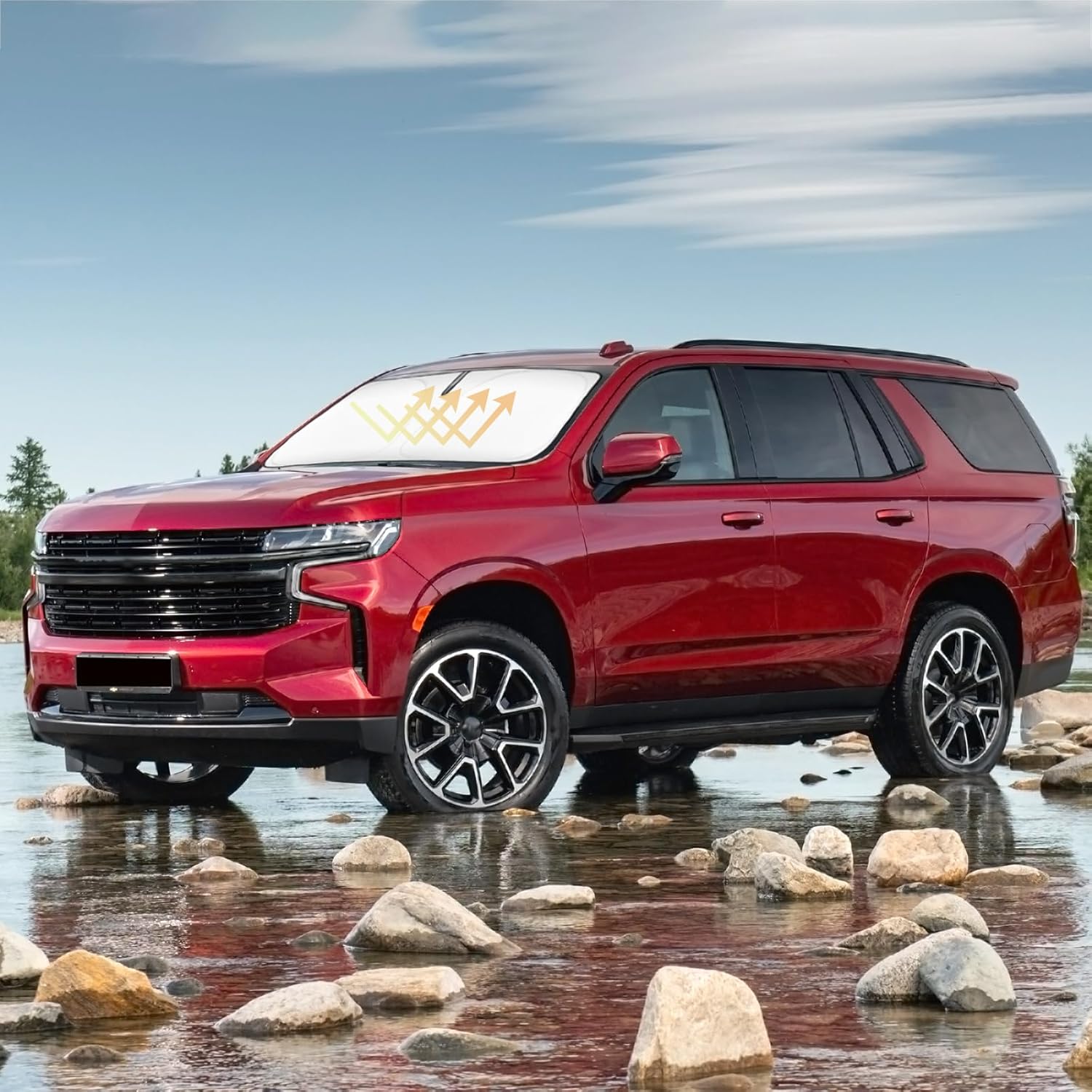 - 【Vehicle Specific】Our Windshield Shade Cover custom fit for 2021 2022 2023 2024 2025 Chevrolet Chevy Tahoe Accessories ,Full covered your windshield,No Gap,100% Perfect fit. The precise fit design and reinforced steel ring are sufficient to allow the sun shade to precisely fit the front window without the need for suction cups to hold it in place, effectively protecting your car from the sun's rays.
