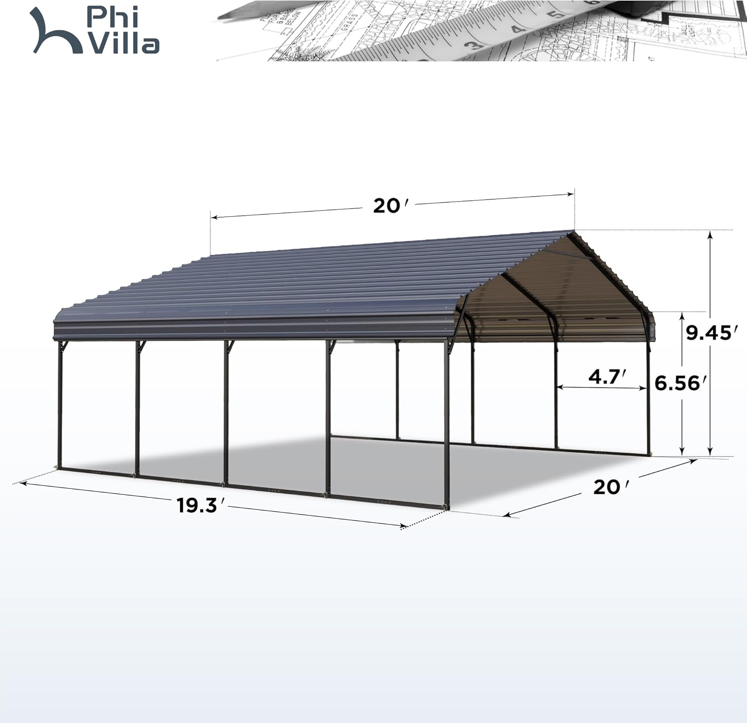 PHI VILLA 2 car Metal Carports 20 x 20 ft Carport with Galvanized Steel Roof, Sturdy Heavy Duty Metal Carport for Cars, Boats, and Tractors