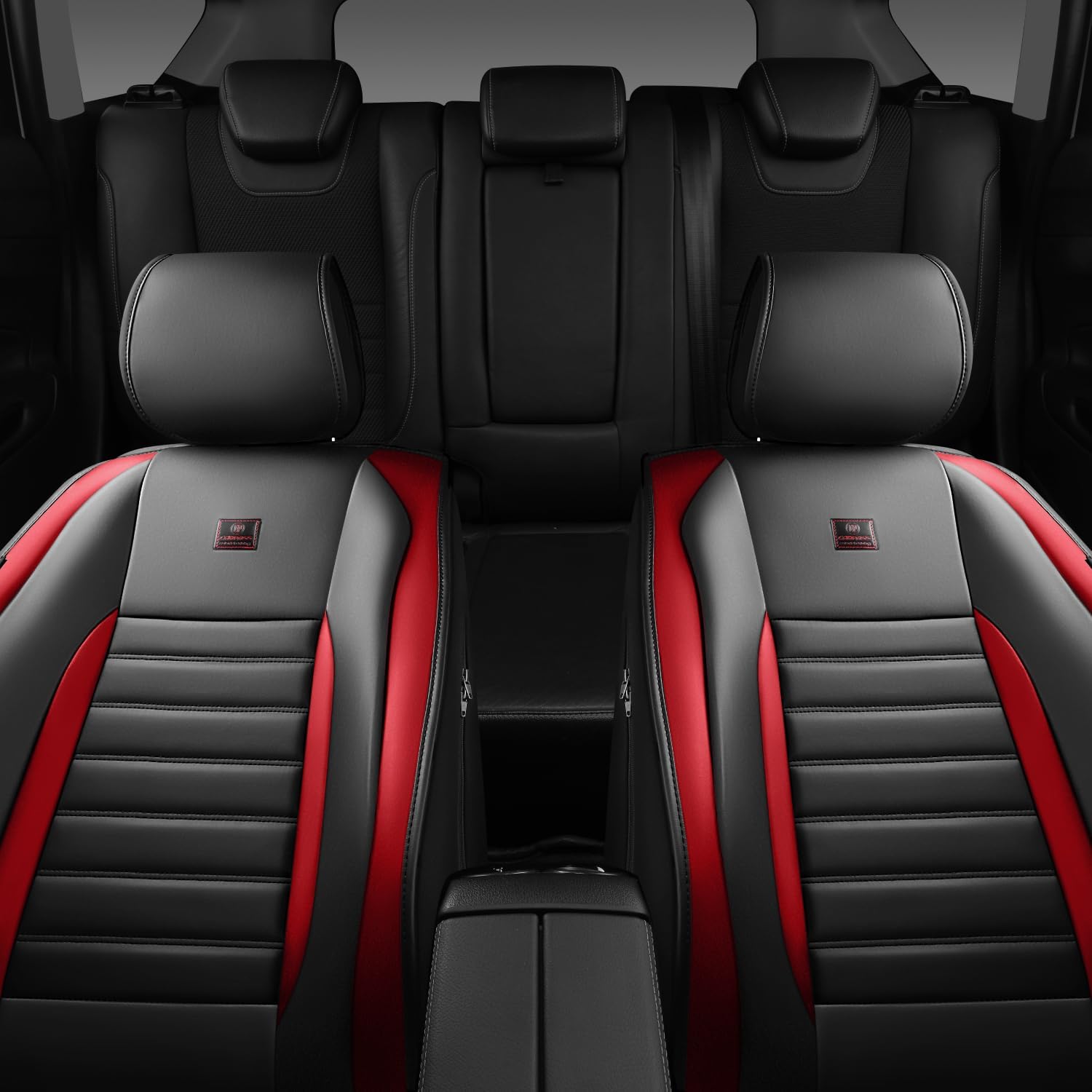 CAR PASS Nappa Leather Car Seat Covers Front Seats, Luxury Seat Protector for Cars, Waterproof Anti-Slip Seat Cushion Armrest Compatible Airbag Universal for Sedan SUV Pick-up Truck Auto, Black Red