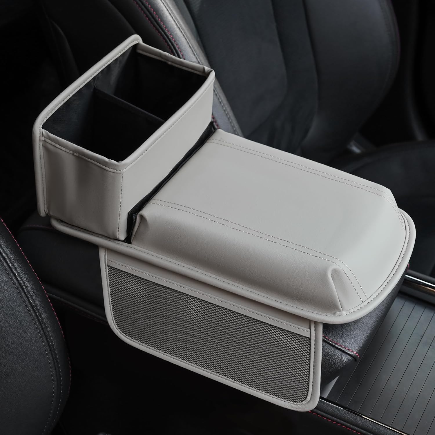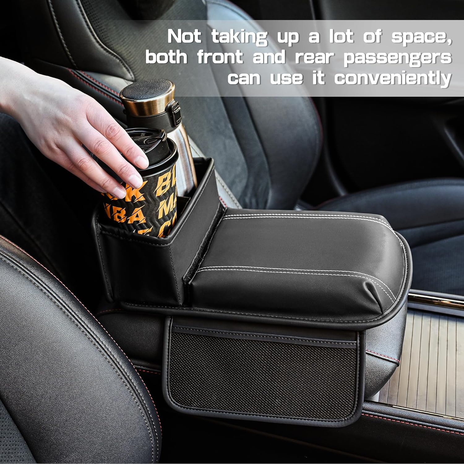 - 【UPGRADED STORAGE DESIGN】This armrest box pad has added mesh storage on both sides and a storage compartment behind the armrest pad, which can be used to store beverages, water bottles, wallets, keys, and other miscellaneous items.