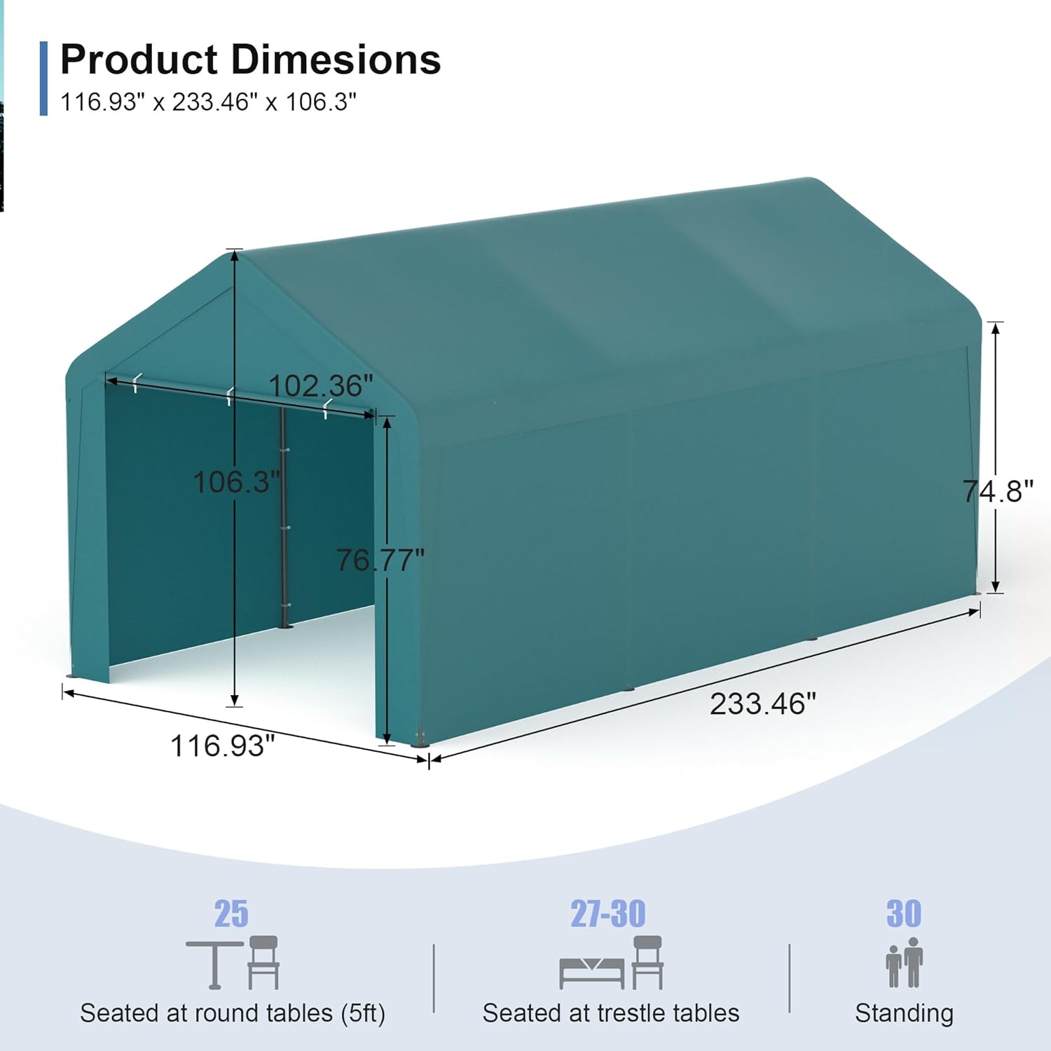 - Product Dimensions : 116.93"L x 233.46"W x 106.3"H