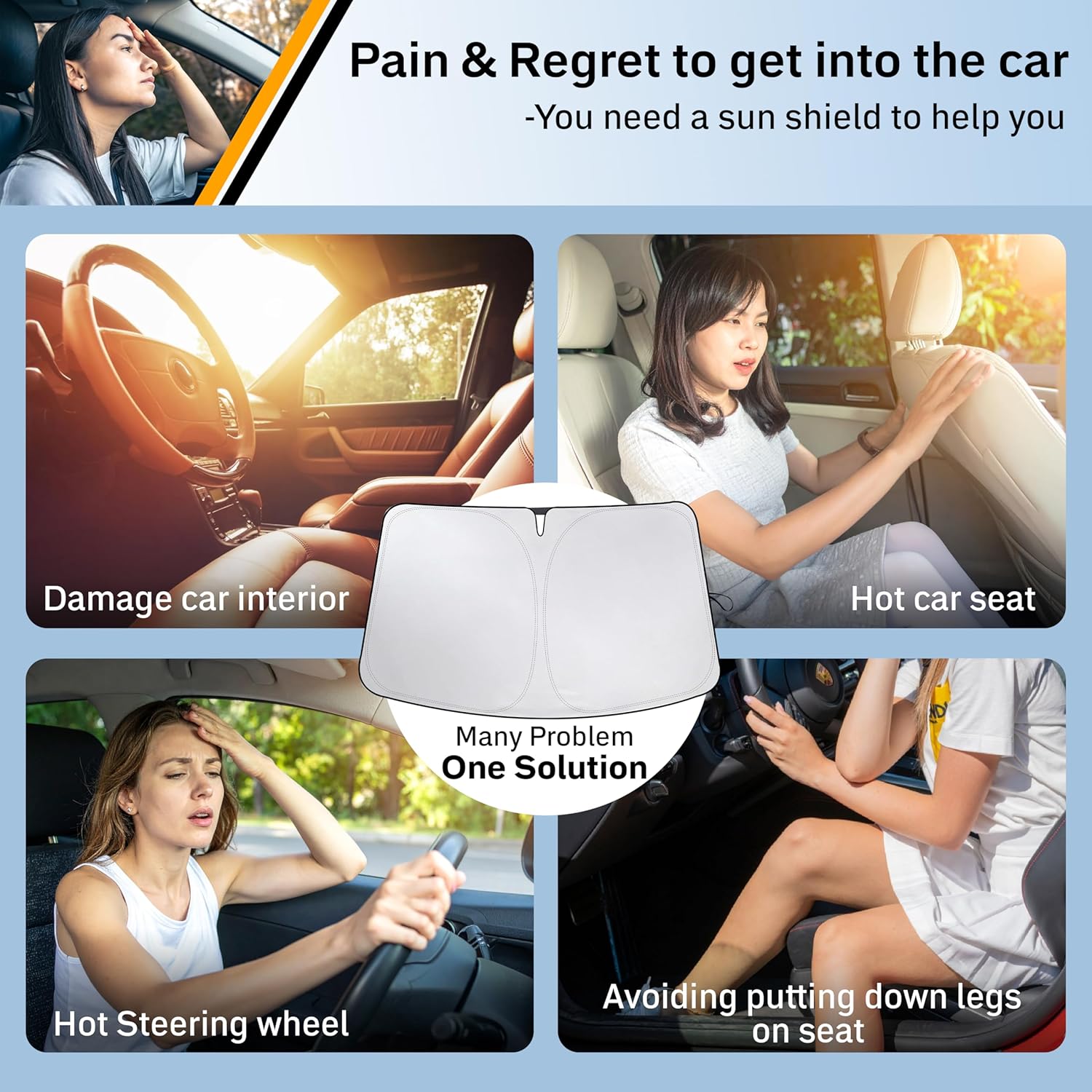 - Heavy-Duty Dual-Layer Thermal Design – Features a reflective silver exterior to deflect sunlight and a black interior layer that absorbs heat. Acts as a reliable thermal barrier that lowers cabin temperatures significantly, even during extreme summer conditions.