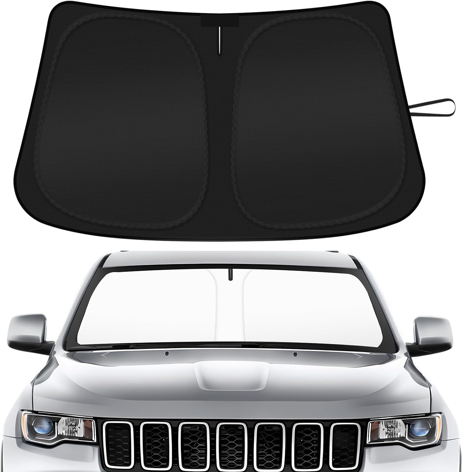 - 【For 2014-2024 2025 Jeep Grand Cherokee Windshield Sun Shade】our car windshield sun shade is specially designed for 2014 2015 2016 2017 2018 2019 2020 2021 2022 2023 2024 2025 Jeep Grand Cherokee accessories windshield, designed to protect your car interior from excessive heat and sunlight when parked, keep your car cool.