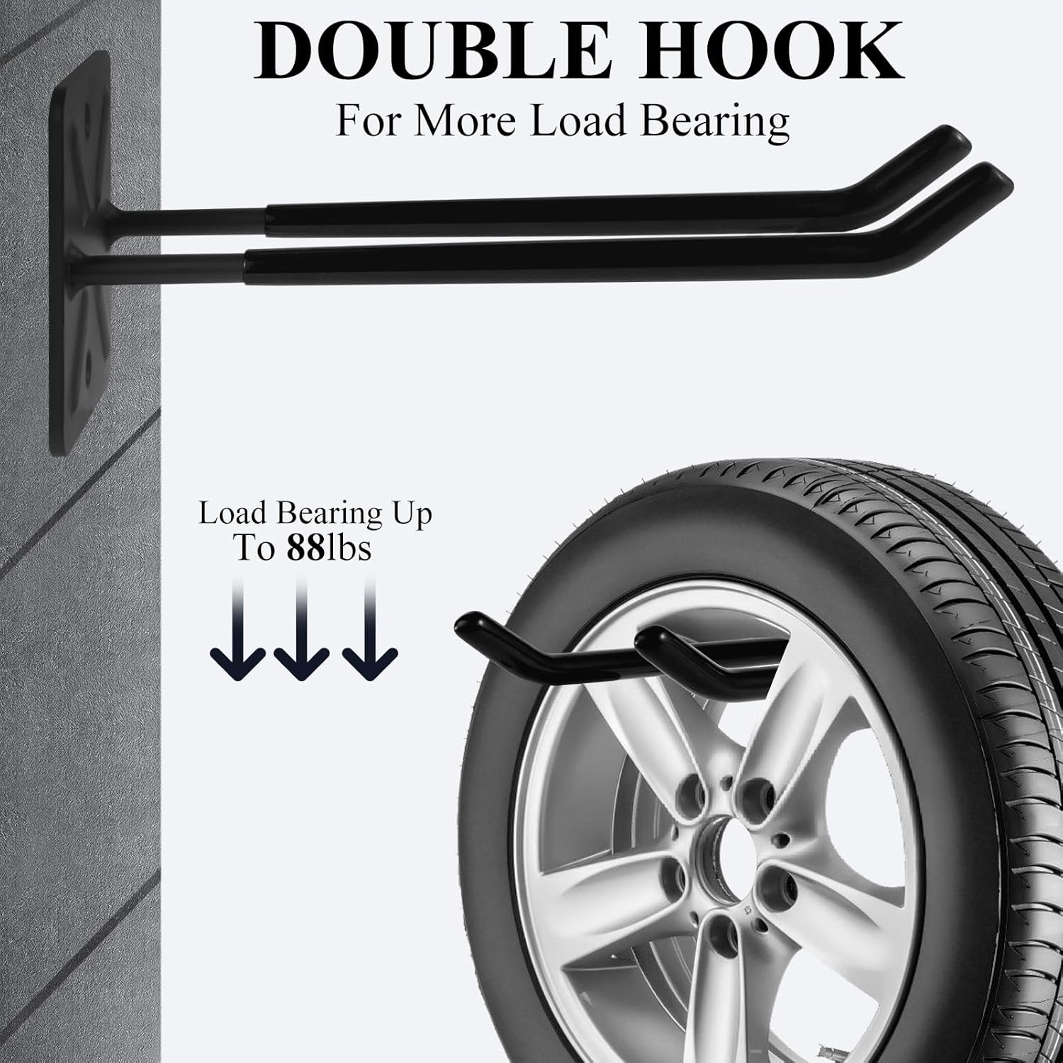 - Black Rubber Coating & Dual-Hook Design: Metal storage hooks with black rubber-coated design efficiently holding tools against scratches and rust, also dual-hook design keeps wall hooks with classic but elegant look.