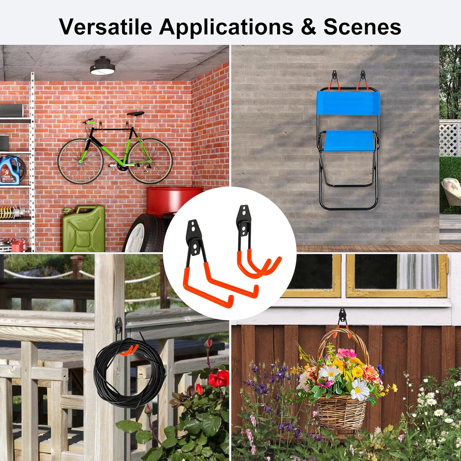 - PVC Rubber Coating & Anti-slip Design: Metal garage hooks with orange rubber-coated design efficiently holding tools against scratches and rust, also anti-slip design preventing tools slipping-off and flaking.