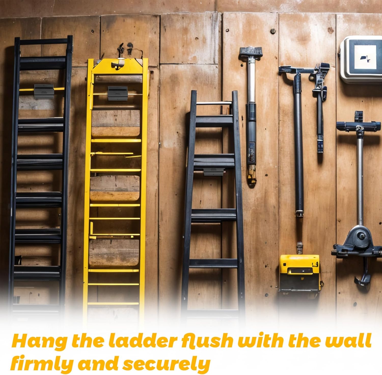 - Easy to Store Bulky Items: This ladder holder is not just qualified for hanging ladders and wheelbarrows, but also useful for other furniture and home equipment
