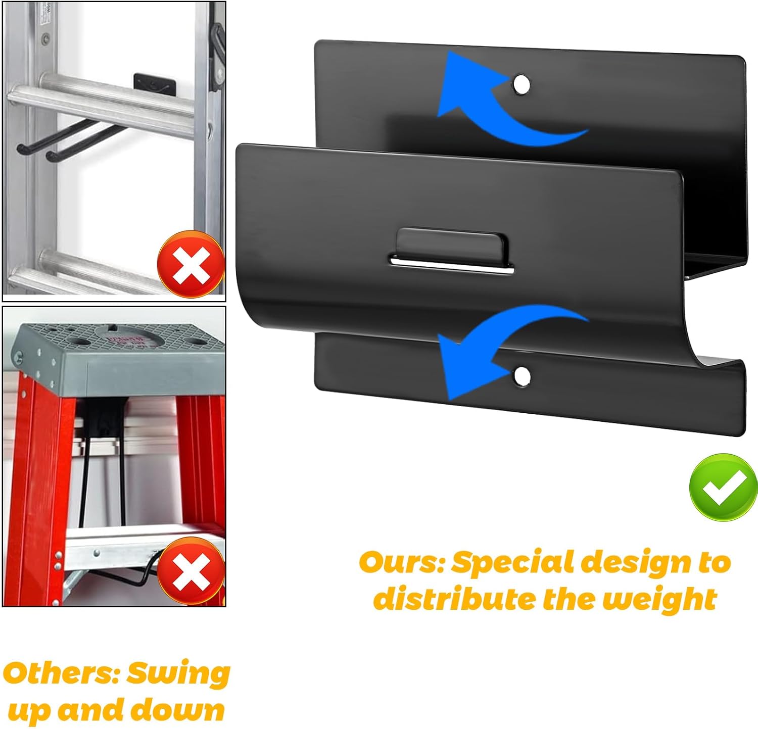 - Buy With Confidence: Two supporting points design ensures firmly hanging without fear of falling over. And we stand behind our garage ladder hooks and every single order is excellent customer service guaranteed