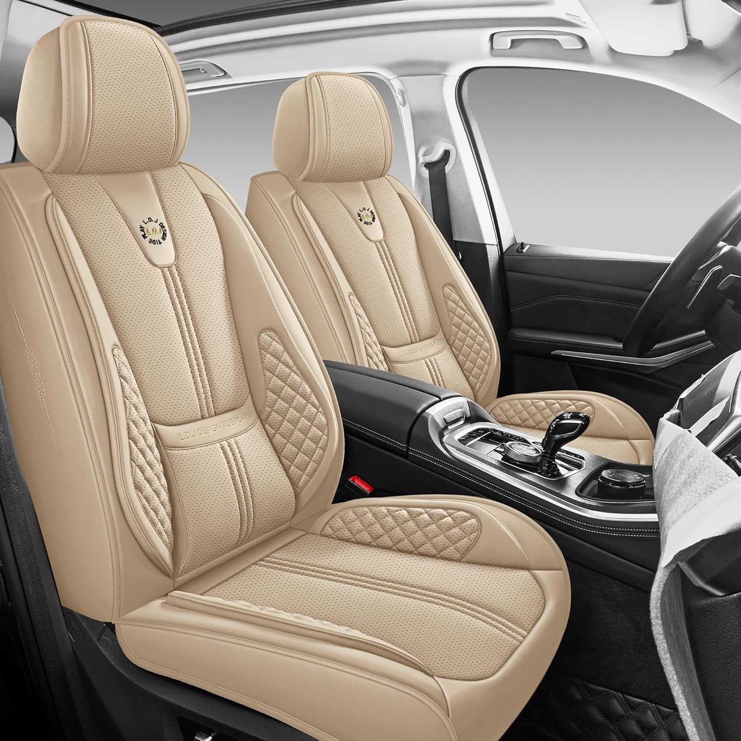 Car Seat Covers Full Set, Black Seat Cover for Cars Compatible Airbag, Easy Install Luxury Leather Automotive Seat Covers with Lumbar Support, for Car, Truck, SUV, Beige