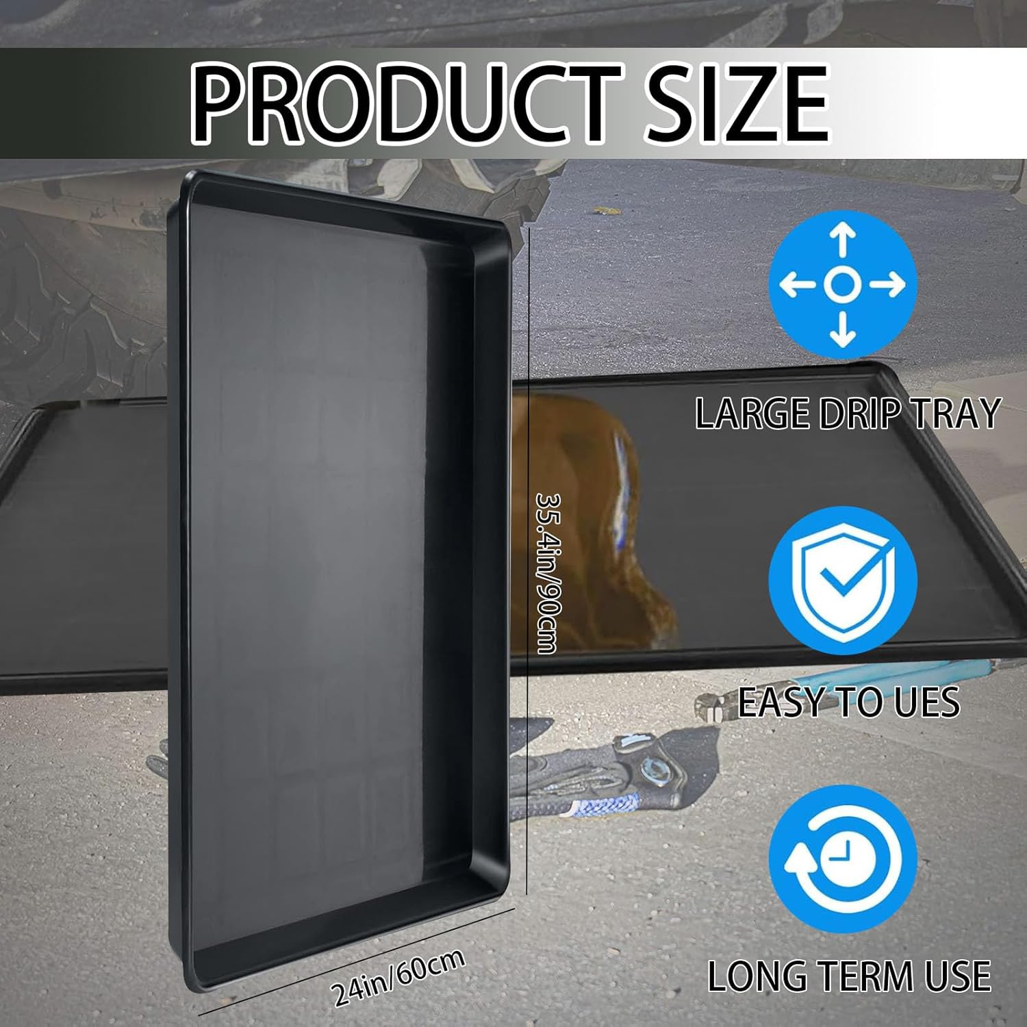 - Reliable Material:The extra large auto oil drip pan is made of quality plastic material, the black matte texture is easy to clean, thicker material is not easy to break, and can be applied for a long time