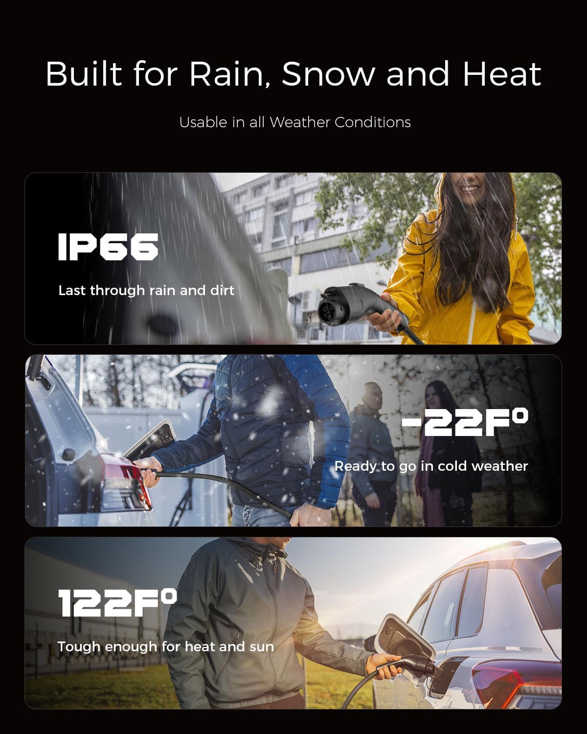 - 【Universal Compatibility】This portable EV charger is compatible with all electric vehicles and plug-in hybrids equipped with J1772 connectors, including leading brands such as for Tesla (requires a SEAJ1772 adapter, not included), Ford, Hyundai, Kia, Nissan, Chevrolet, and more.