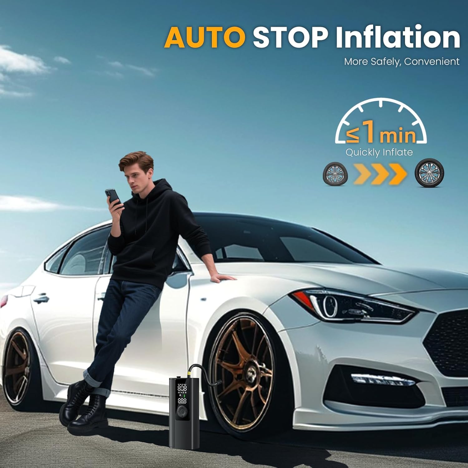 - 𝐅𝐚𝐬𝐭 & 𝐀𝐜𝐜𝐮𝐫𝐚𝐭𝐞 𝐀𝐢𝐫 𝐏𝐮𝐦𝐩 - The upgraded air pump for car tires takes only 50 seconds to inflate tires from 30 psi to 36 psi. This tire inflator is equipped with a high-precision pressure sensor, quickly detects tire pressure, and agile operation.