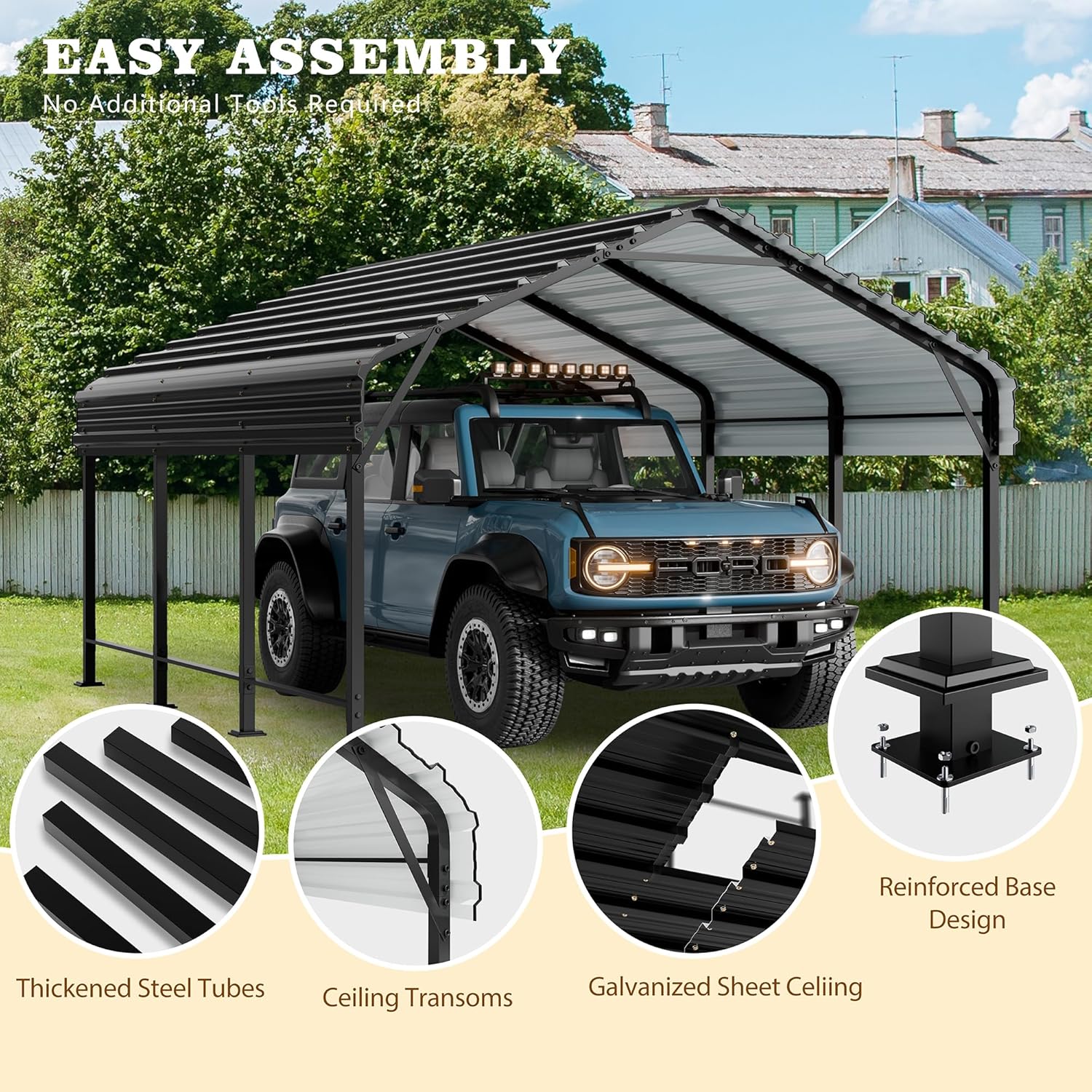 - 【Effortless Setup】The heavy duty steel carport package includes all essential hardware and user-friendly instructions. We recommend 2 or more people for installation, install on a flat. If you have any installation or usage questions, please feel free to contact us.