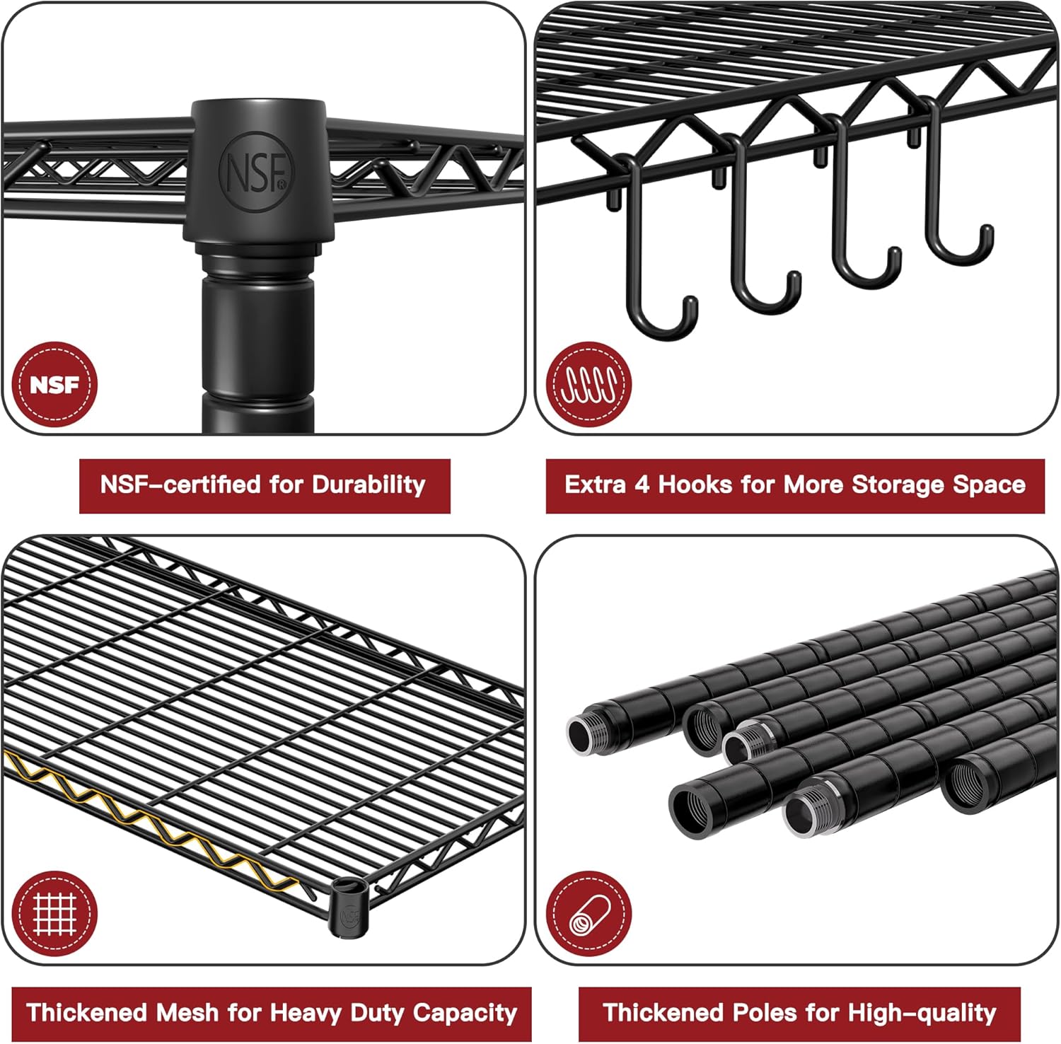 - Special Feature : 5 Tier Wire Shelving Unit for Storage, 1250 LBS Heavy Duty Shelving, Storage Shelves for Pantry Kitchen, Adjustable, Heavy Duty, NSF Certified, Space Saving 5 Tier Wire Shelving Unit for Storage, 1250 LBS Heavy Duty Shelving, Storage Shelves for Pantry Kitchen, Adjustable, Heavy Duty, NSF Certified, Space Saving