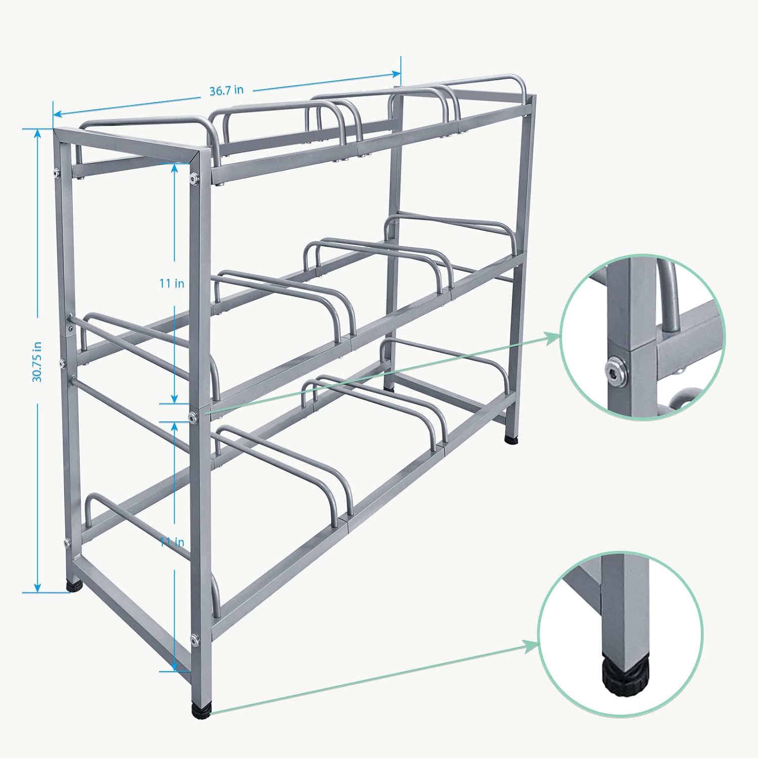 - Strong Load-Bearing Capacity & Adjustable Height: This water jug holder can hold up to 9 jugs with an impressive 380 LBS weight capacity. Equipped with height-adjustable padded feet, it stands securely on any floor surface without tilting, ensuring stability on uneven ground.
