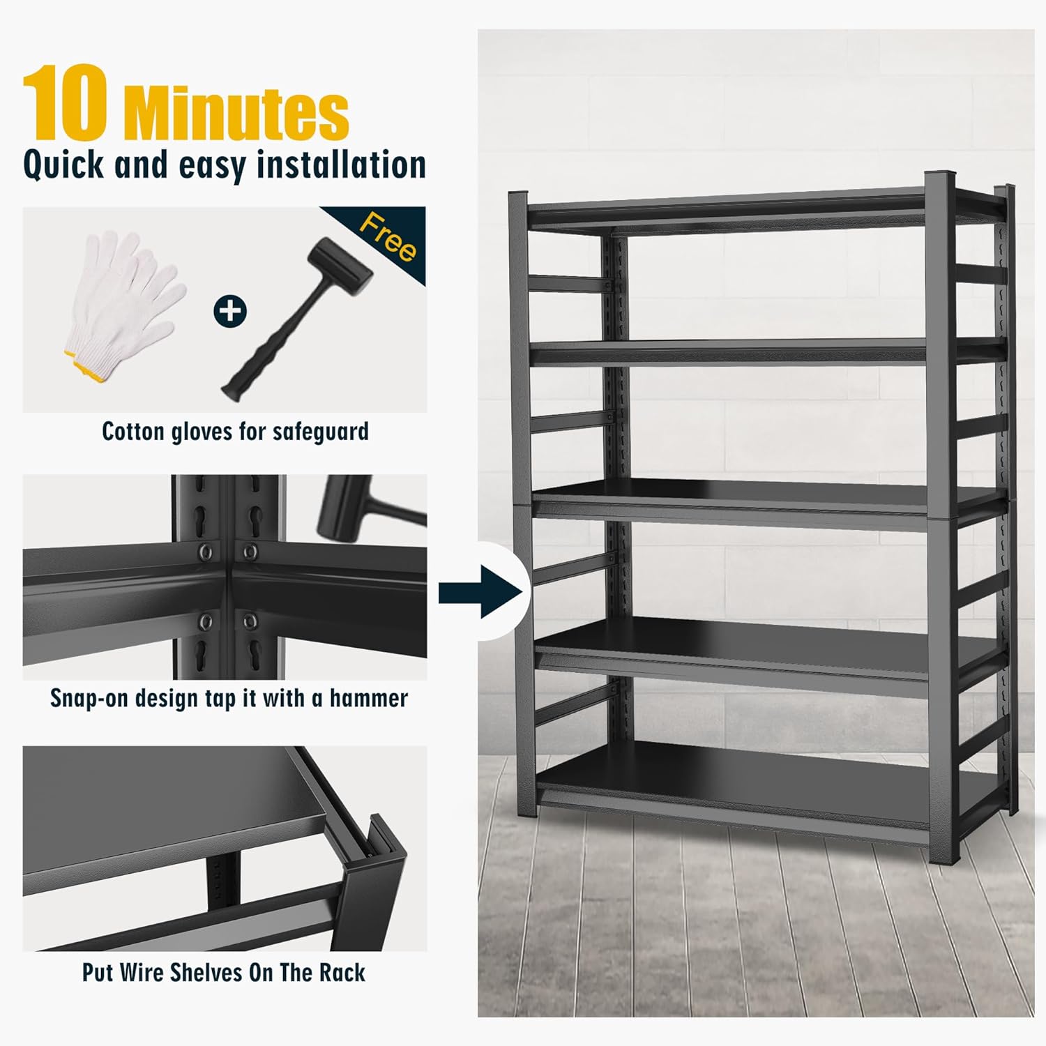 78" H,Metal Garage Shelving Heavy Duty 5-Tier Adjustable Storage Shelves Easy to Assemble, Garage Organization with 4500lbs Capacity,Shelving Racks for Storage,Ideal for Garage,Basement,Warehouse