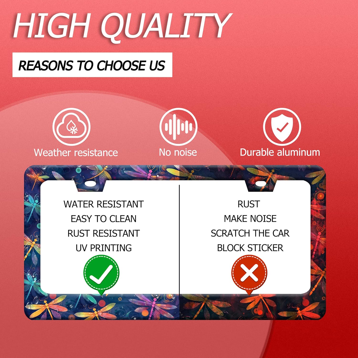Dragonflies License Plate Frame Funny Dragonfly License Plate Frames Stainless Steel Accessories Cars Decor with 2 Holes and Screws Fits Standard Us Ca Vehicles License Plate Holder 12.2 X 6 Inch