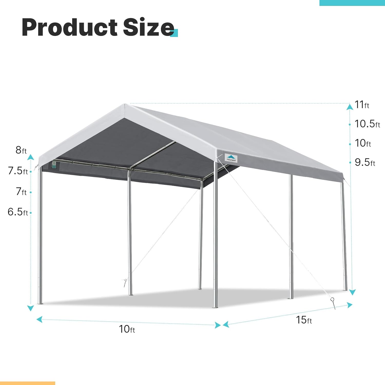 - 【4 Adjustable Heights】- There are 4 options for the side height of this metal carport, which are 6.5ft, 7.0ft, 7.5ft, 8.0ft, accordingly peak height 9.5ft, 10.0ft, 10.5ft, 11.0ft. You can choose a suitable height for all kinds of your needs.
