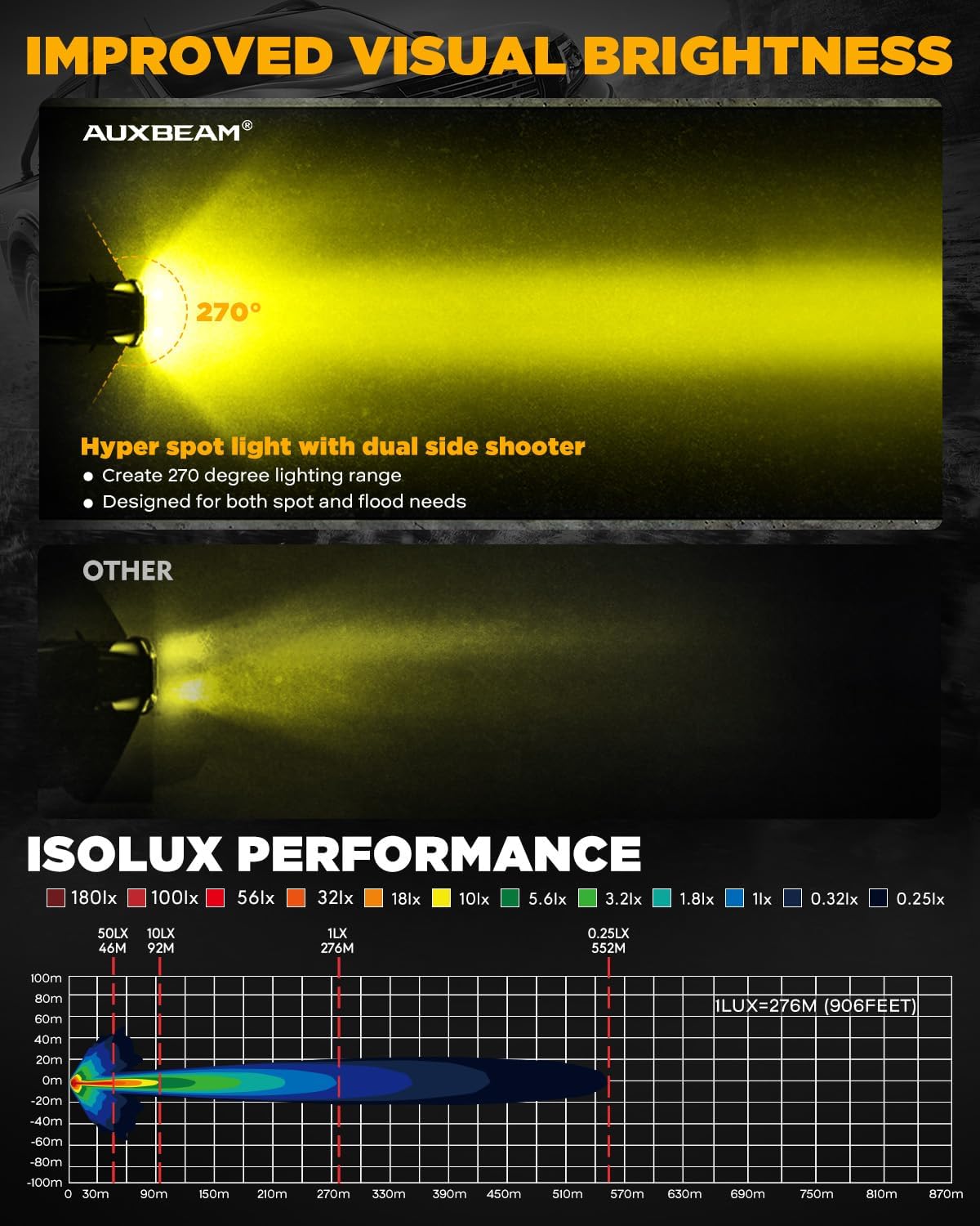 - 【Shine Bright Like a Rockstar】Turn night into day with 108W of P8 LED and 2835 SMD brilliance! With a massive output of 12,800 lumens, you’ll see up to 906 feet at 1 LUX. Experience precision beams that eliminate glare and enhance clarity, making every adventure unforgettable with Auxbeam V-Ultra Series!