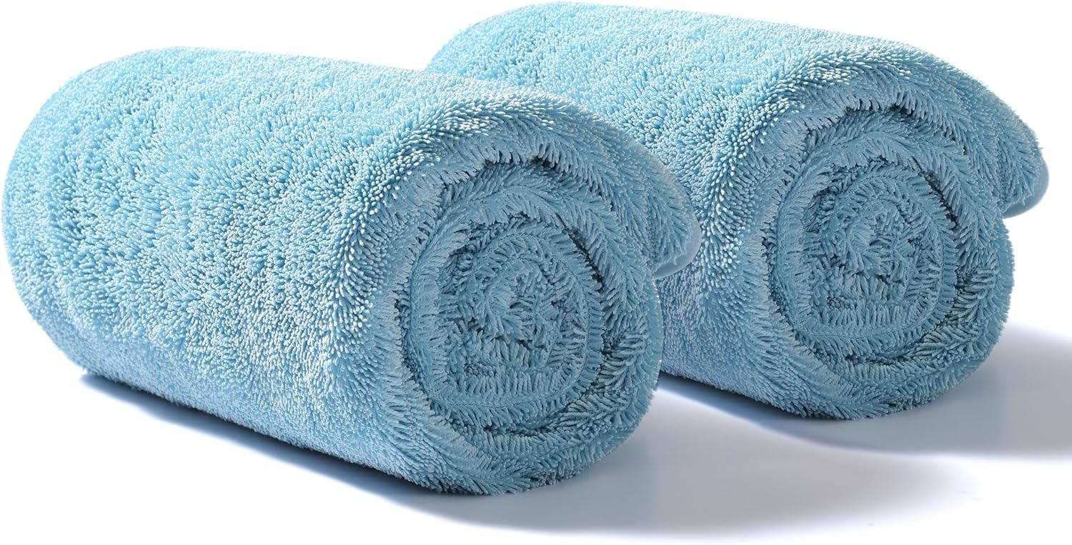 JOYMOOP Microfiber Towels for Cars, 2 Pack 63" x 29.5" Car Drying Towel, Blue Reusable Car Towel, Quick Drying Car Microfiber Cleaning Cloth for RVs, SUVs, Trucks
