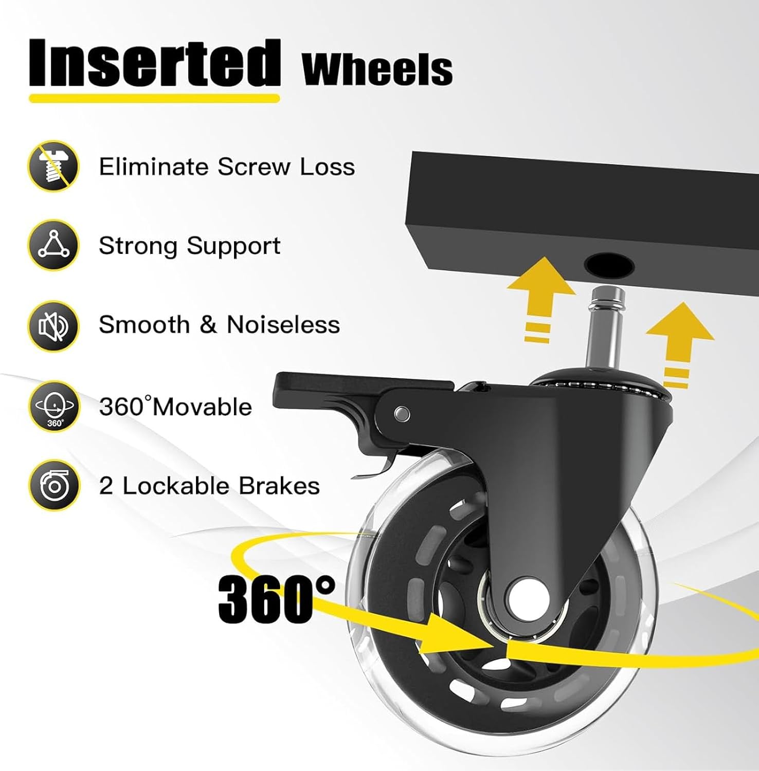- 【Upgraded Inserted Wheels】The wheel of the inserted structure does not have the same loss of threads as the screw wheel. The rolling shop stool is equipped with 4 pieces 360°movable wheels with 2 lockable brake casters. Smooth-rolling casters enhance mobility, easily over cracks and debris on floor.