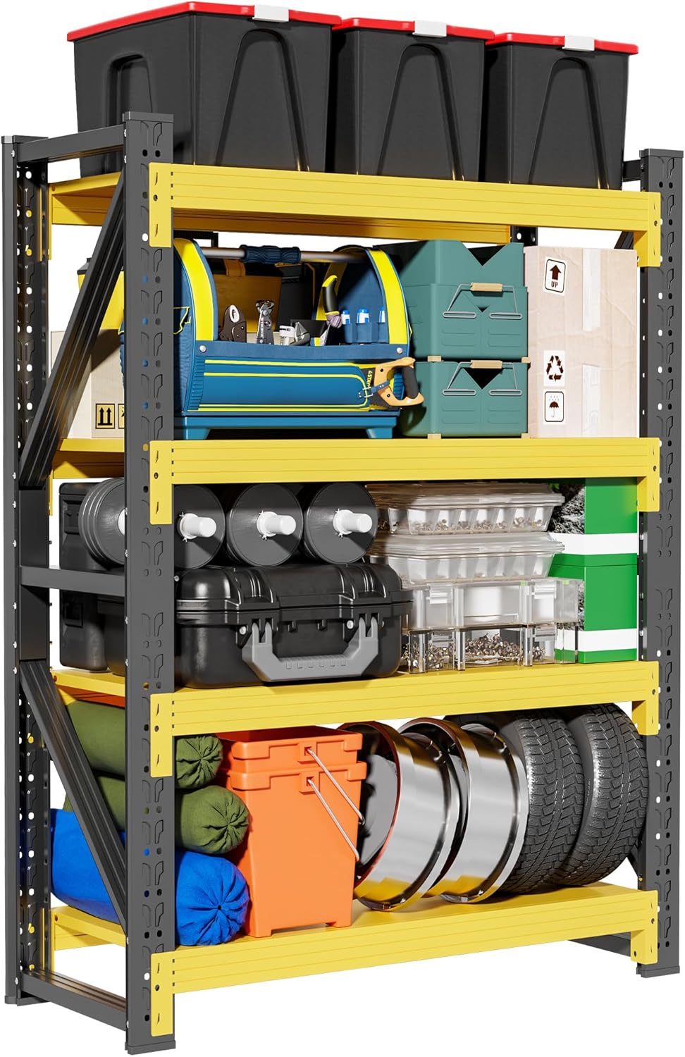 4-Tier Storage Shelves,79" H Heavy-Duty Garage Shelving Unit,Adjustable Industrial Metal Shelf System,4,500lbs Capacity,Tool Organizer for Garage,Workshop,60" W*20" D*79" H,Black&Yellow