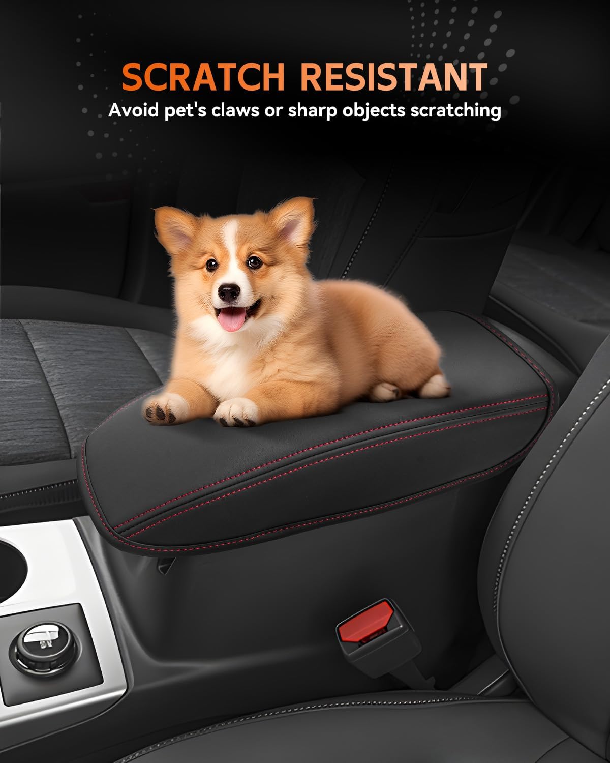 - [Easy To Install] Designed with a Velcro strap to secure it to the center console (no tools required). With super stretch and pull resistance, it will not change the open/close function of the armrest box.