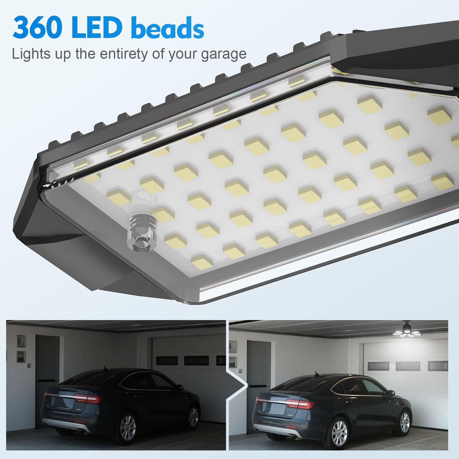 - 【7+1 Deformable Garage Lights】The garage light fixture adopts a 8 panel design, 7 adjustable 0-90°panels + 1 central lighting panel, which is adjustable to illuminate specific areas and achieve 360°all-round lighting coverage, garage lights to light up your life.
