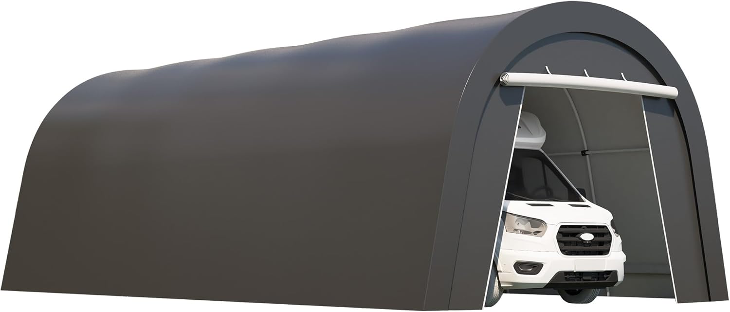 - DOMED CARPORT: 12x25 ft car port dome design prevents water and snow buildup, reducing structural stress and enhancing durability. The sleek, curved shape of the carport is more attractive and provides more interior space and better air circulation