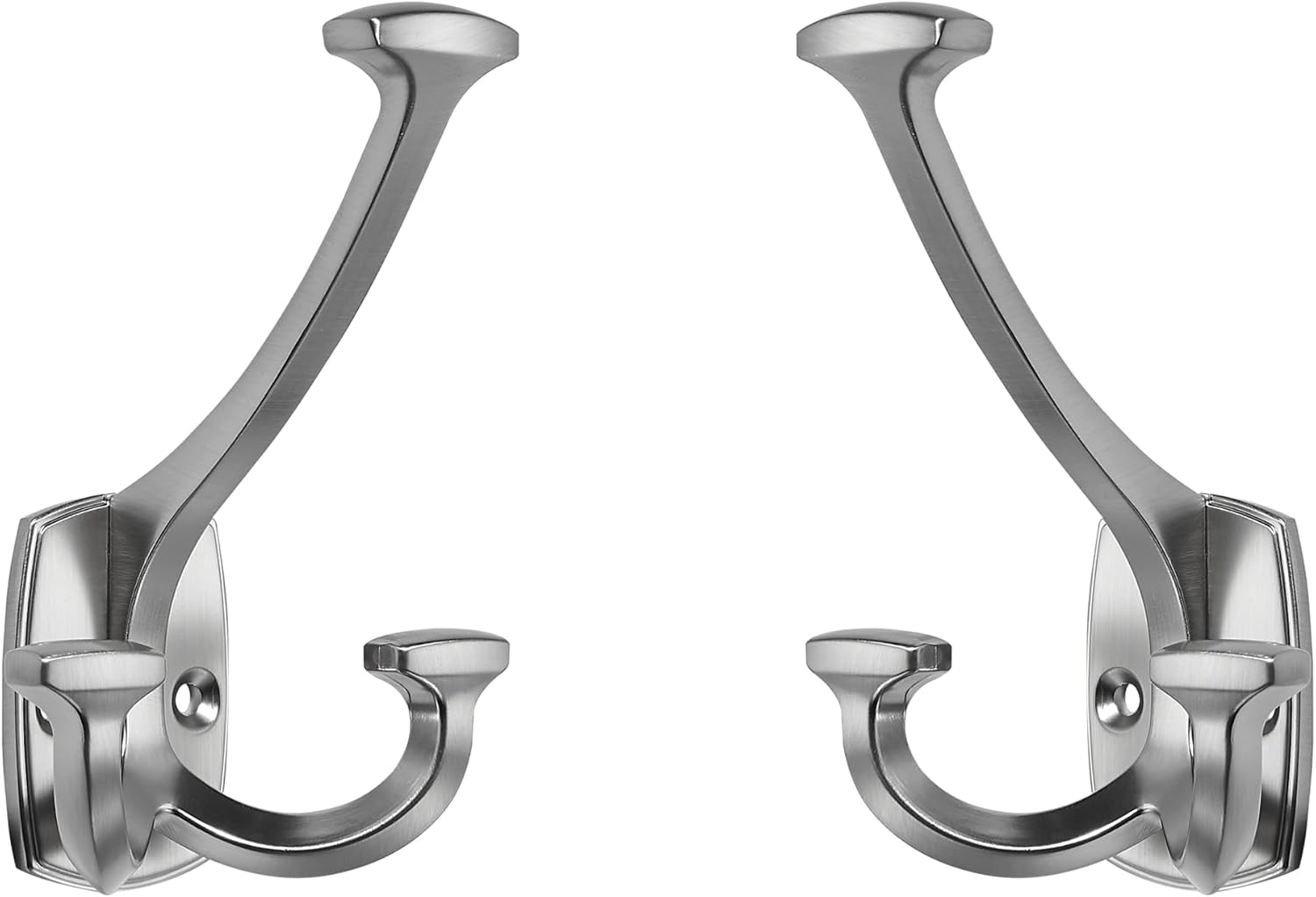 Large Wall Double-Sided Hook 5 Pack Brushed Satin Nickel Hook Decorative Heavy Duty Solid Large Coat Hooks for Towel Hanging Coats Robe Towel Bags Door Back 2 Prong Hooks