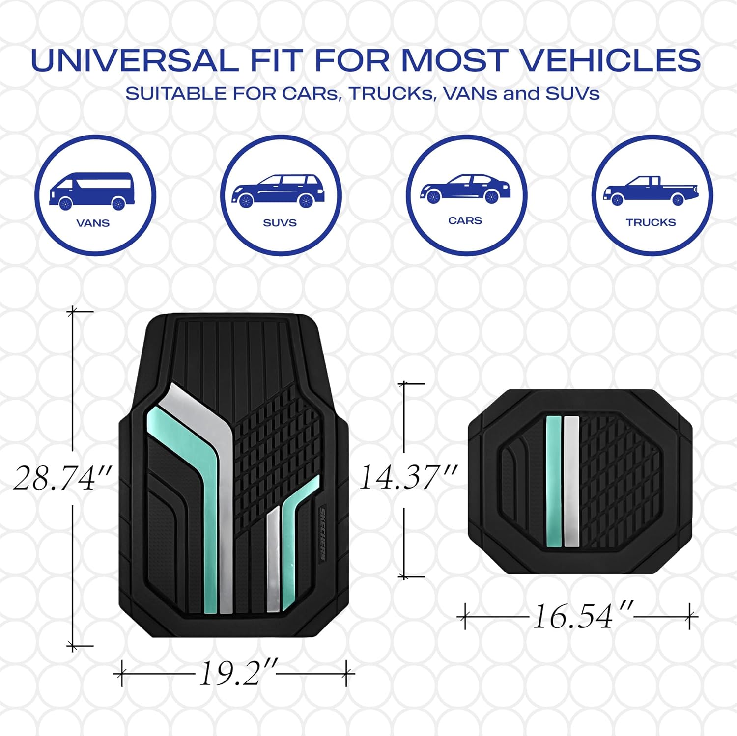 - TWO-TONE DESIGN-Engineered for quick and easy installation, Skechers Floor Mats are designed to fit most cars, trucks, pickups, and SUVs. Features a stylish two-tone color scheme that adds a modern and dynamic touch to your car interior, effortlessly blending elegance with functionality.